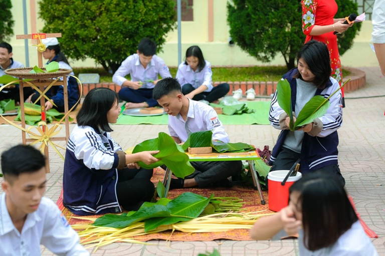 Ngày hội“Gói bánh chưng xanh - Chia sẻ xuân hồng” thu hút đông đảo ĐVTN, học sinh tham gia