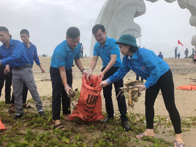 ĐVTN tham gia dọn vệ sinh môi trường biển