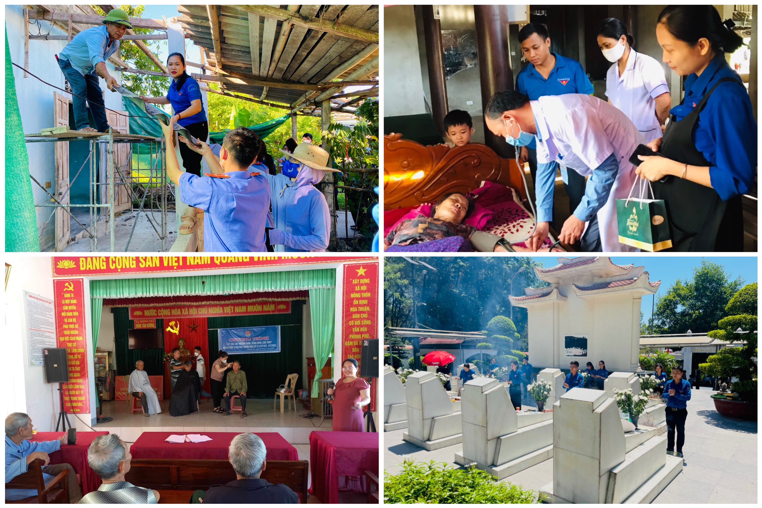 Kết quả, các cấp bộ Đoàn, Hội toàn tỉnh đã trao tặng hơn 285 suất quà trị giá gần 120 triệu đồng, trao tặng các mô hình sinh kế cho các gia đình cựu TNXP có hoàn cảnh khó khăn; tổ chức gần 45 chương trình khám, cấp phát thuốc miễn phí cho gần 1.500 cựu TNXP và gia đình chính sách, người có công với cách mạng; tổ chức hơn 75 bữa cơm tình nghĩa tại các gia đình cựu TNXP neo đơn; hỗ trợ kinh phí khởi công xây dựng nhà tình nghĩa, chỉnh trang, sửa chữa nhà cho hơn 54 hộ gia đình cựu TNXP với tổng trị giá hơn 200 triệu đồng; tiến hành ra quân vệ sinh, chỉnh trang vườn hộ cho cựu TNXP; tổ chức chương trình rửa xe gây quỹ, cắt tóc miễn phí cho cựu TNXP, người có công với cách mạng,…