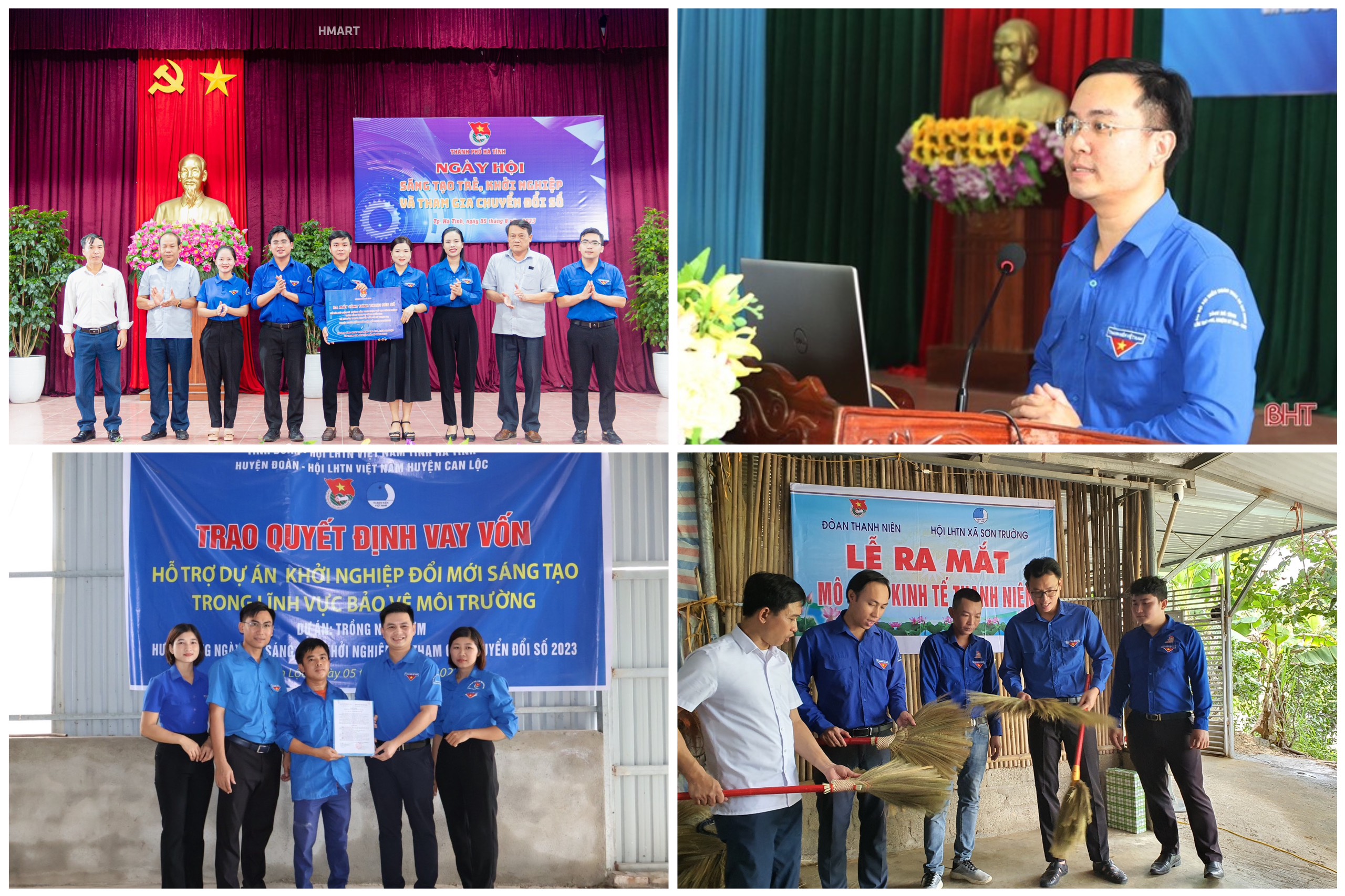 Tổ chức 15 hoạt động tuyên truyền, phổ biến các cơ chế chính sách, Nghị quyết về khởi nghiệp, lập nghiệp, các thông tin tư vấn hướng nghiệp, giới thiệu việc làm; hướng dẫn các quy trình thành lập THT, HTX, quy trình xây dựng sản phẩm OCOP, quảng bá, giới thiệu sản phẩm thanh niên; các hoạt động kết nối, áp dụng nền tảng số tiêu thụ sản phẩm trên các trang thương mại điện tử; ra mắt 12 mô hình kinh tế thanh niên; trao quyết định hỗ trợ vốn vay từ Quỹ hỗ trợ TN khởi nghiệp Hà Tĩnh và Quỹ QGGQVL cho 03 dự án khởi nghiệp với số tiền 170 triệu đồng.