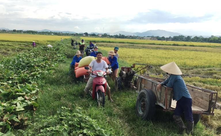 ĐVTN hỗ trợ người dân thu hoạch lúa
