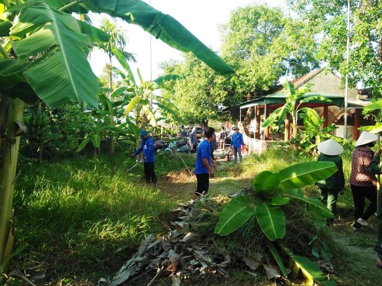 Thanh niên tình nguyện huyện Can Lộc giúp hộ gia đình có công với nước cải tạo vườn tạp