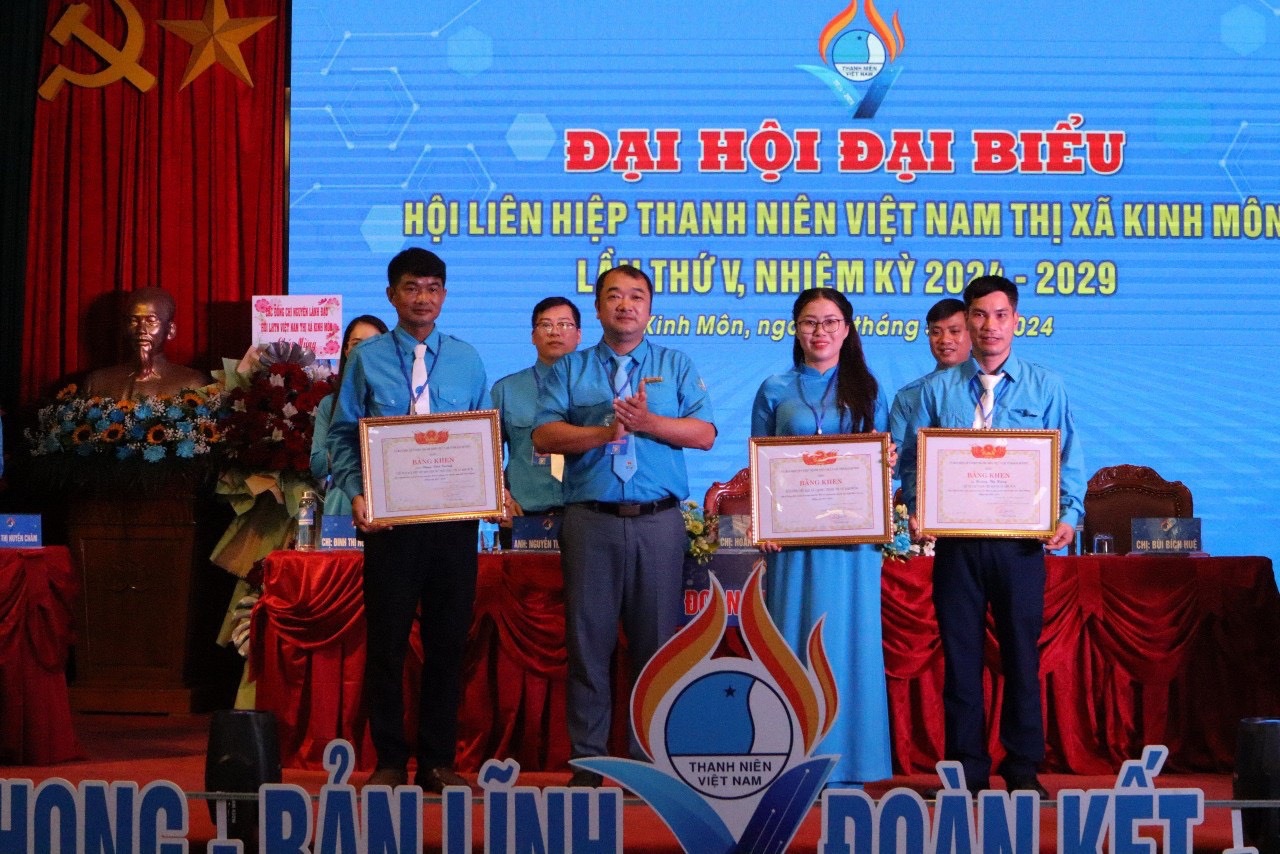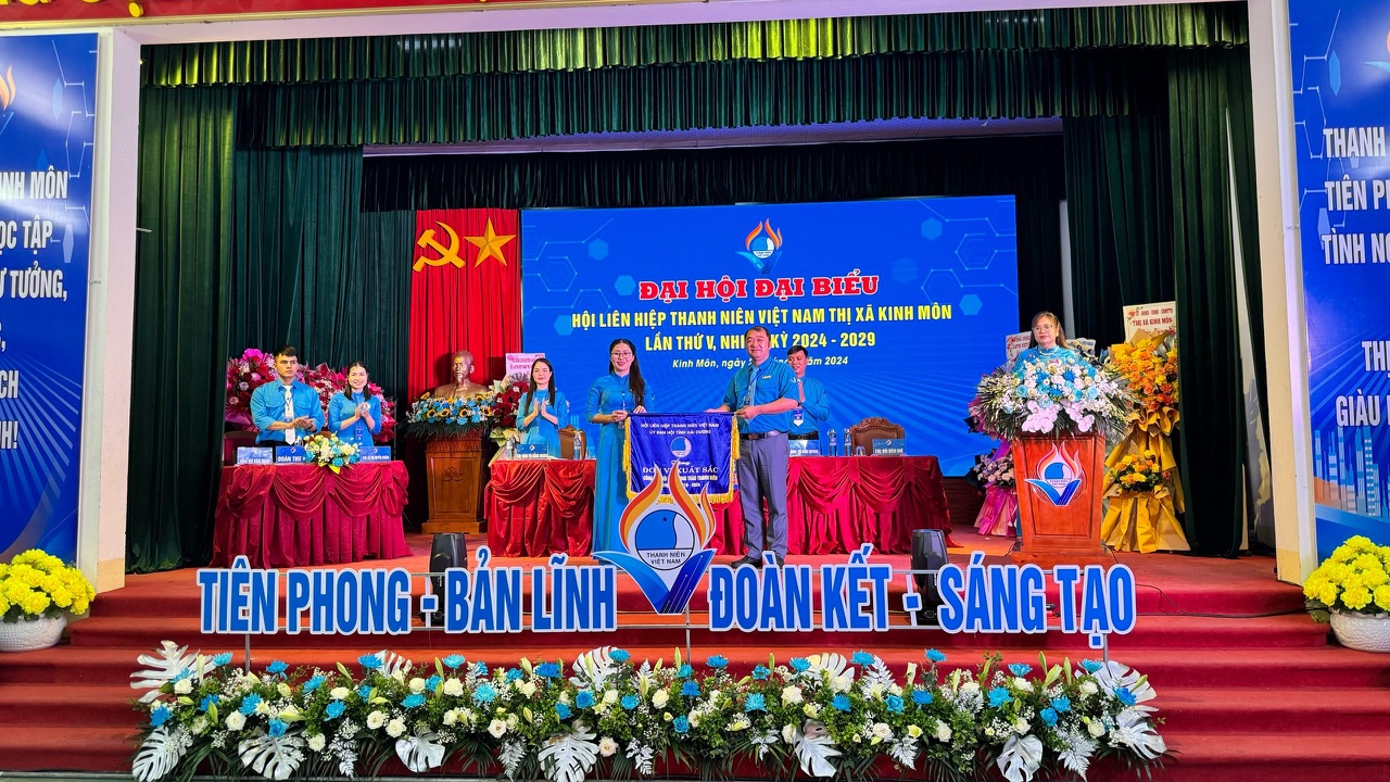 Tại Đại hội, Ban Thư ký Hội LHTN Việt Nam tỉnh trao cờ thi đua cho Uỷ ban Hội LHTN Việt Nam thị xã Kinh Môn vì đã có thành tích xuất sắc trong công tác Hội và phong trào thanh niên nhiệm kỳ 2019-2024.