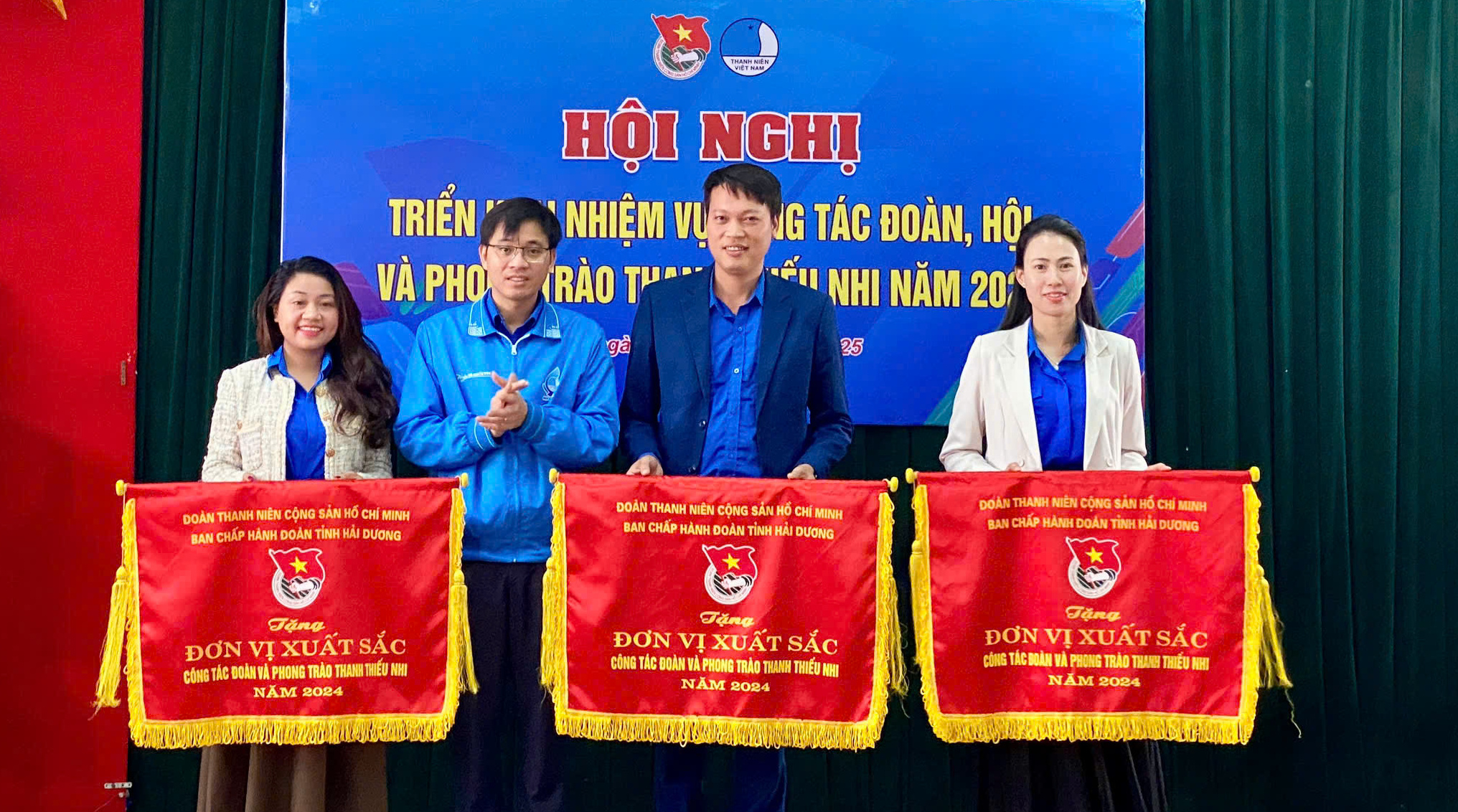 Đồng chí Bùi Hải Bằng, Bí thư Tỉnh đoàn Hải Dương trao cờ thi đua cho các đơn vị có thành tích xuất sắc