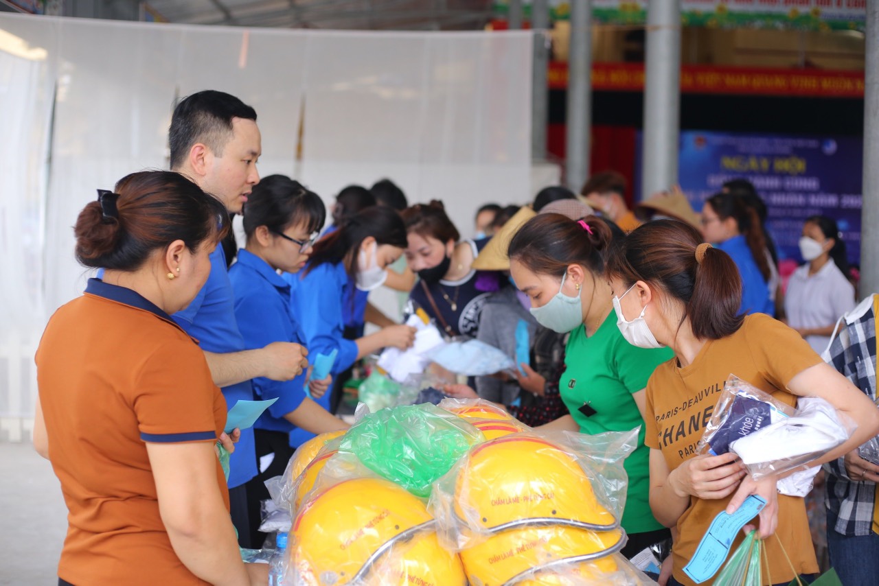 Đặc biệt, Ban tổ chức triển khai mô hình “Gian hàng 0 đồng” với sự đồng hành, hỗ trợ của các doanh nghiệp: Thạch rau câu Long Hải, bún phở khô Phúc Vang, bánh đa Lộ Cương, muối ớt Đức Hải; quần áo đến từ thương hiệu thời trang Yody thu hút sự quan tâm đông đảo của tất cả thanh niên công nhân.
