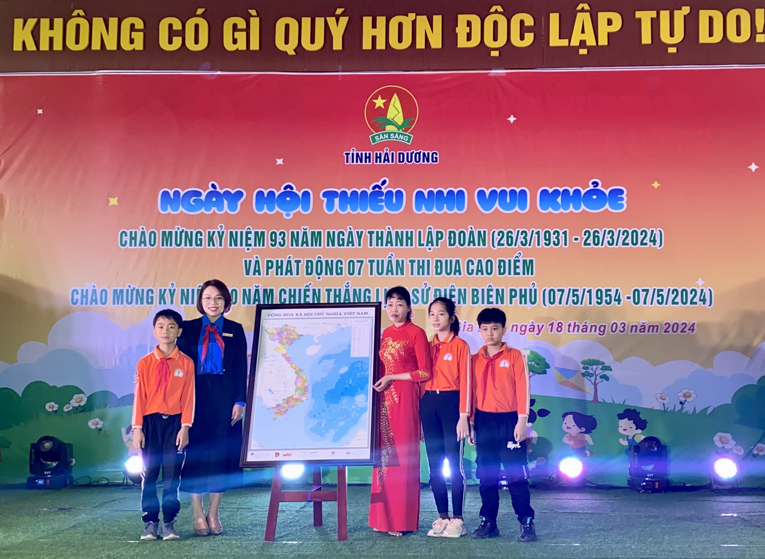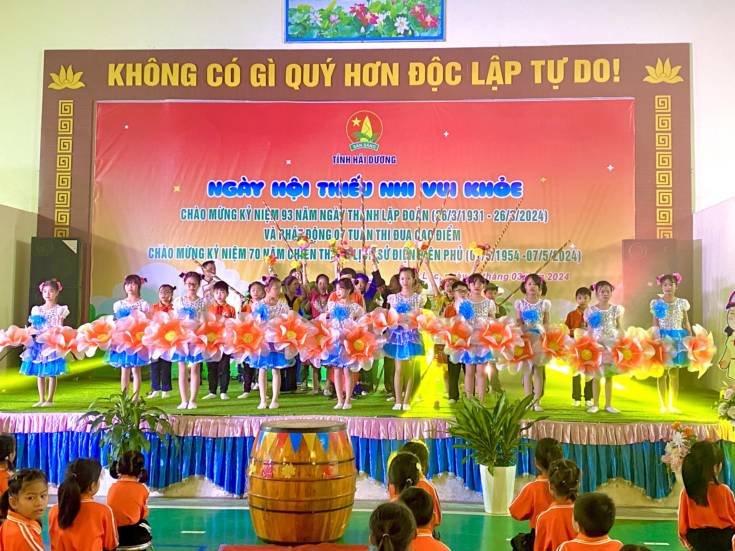 Phát biểu chỉ đạo tại Ngày hội, đồng chí Dương Thị Hương Giang – Phó Bí thư Tỉnh đoàn, Chủ tịch Hội đồng Đội tỉnh đã nêu lên ý nghĩa sâu sắc của ngày hội và động viên các cháu thiếu nhi Hải Dương ra sức thi đua, học tập, rèn luyện tốt để hưởng ứng ngày chiến thắng lịch sử “lừng lẫy năm châu, chấn động địa cầu”, cùng với đó là lời đề nghị tới các đồng chí Tổng phụ trách và toàn thể các em Đội viên, thiếu niên nhi đồng thực hiện tốt một số hoạt động nằm trong Kế hoạch tổ chức các hoạt động chào mừng kỷ niệm 70 năm Chiến thắng Điện Biên Phủ (07/05/1954 – 07/05/2024).