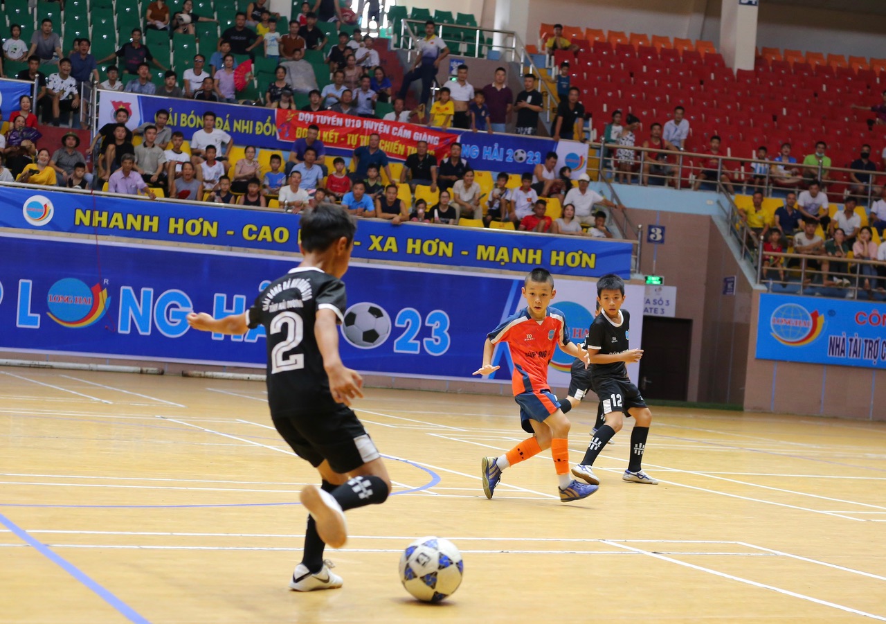 Trước đó, trận đấu chung kết của giải đấu giữa 02 đội tuyển Tứ Kỳ - Cẩm Giàng đã được diễn ra vô cùng kịch tính. Thể hiện sự nổi bật trong lối chơi ngay ở hiệp đấu đầu tiên, liên tục gây sức ép về phía khung thành đối phương, U10 Tứ Kỳ đã dẫn trước 4 bàn thắng. Bước sang hiệp 2, U10 Cẩm Giàng giữ được sự bình tĩnh, thay đổi chiến thuật và gỡ được 2 bàn thắng.