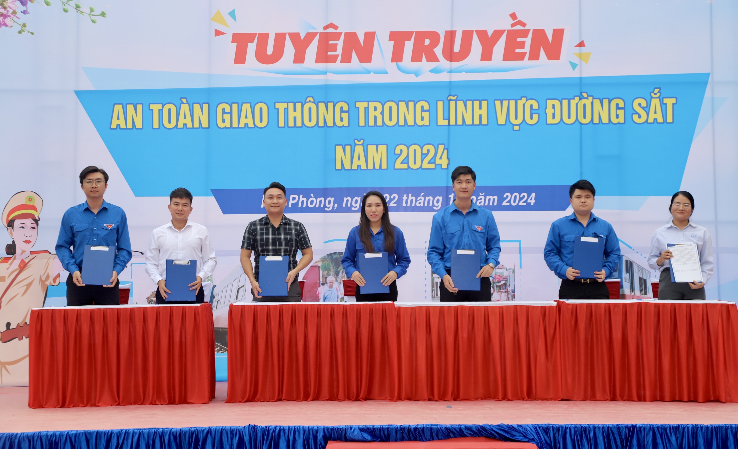 Chương trình diễn ra lễ ký cam kết phối hợp giữa các đơn vị về tham gia giao thông đường sắt an toàn gồm: Đoàn thanh niên Cục Đường sắt Việt Nam, Đoàn thanh niên Tổng công ty Đường sắt Việt Nam, Quận Đoàn Lê Chân, Quận Đoàn Ngô Quyền, Quận Đoàn Hải An và Huyện Đoàn An Dương.