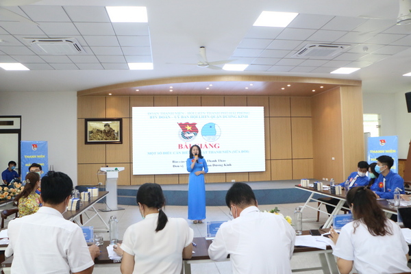 Phần thi Kỹ năng báo cáo viên của thí sinh Bùi Thị Thanh Thảo đến từ Quận đoàn Dương Kinh