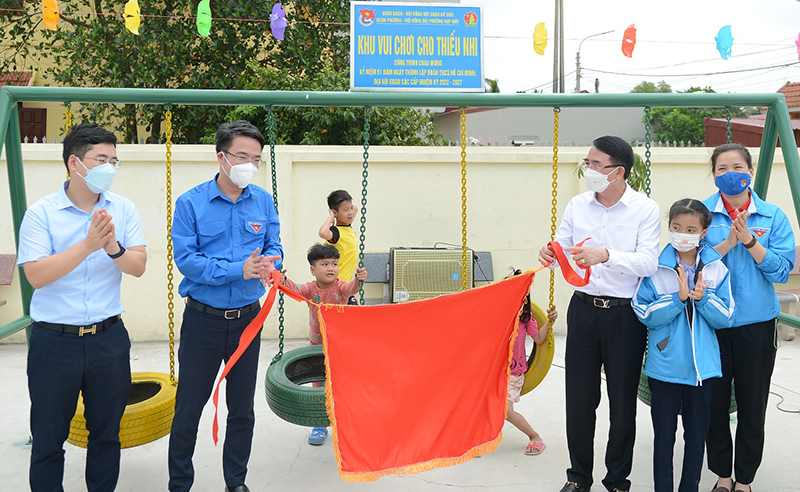 Bí thư Trung ương Đoàn Nguyễn Tường Lâm (thứ 2 từ trái sang trong ảnh) cùng đại diện các đơn vị liên quan khánh thành công trình thanh niên “Khu vui chơi cho thiếu nhi” trong khuôn khổ chương trình ra quân Ngày Chủ nhật xanh toàn quốc lần thứ I năm 2022 tại quận Đồ Sơn, thành phố Hải Phòng.