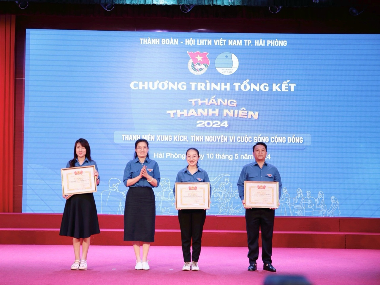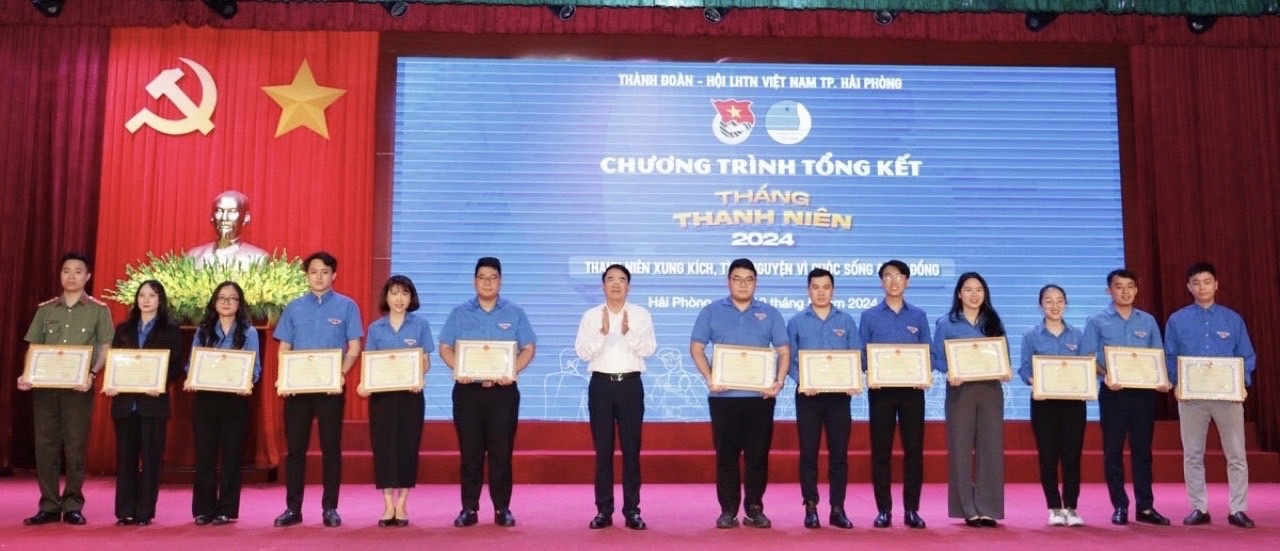Tại Hội nghị, 03 tập thể, cá nhân đạt thành tích xuất sắc trong Tháng thanh niên nhận Bằng khen của Trung ương Đoàn; 14 tập thể, cá nhân đã được nhận bằng khen của Chủ tịch UBND thành phố. Ban Thường vụ Thành đoàn đã trao tặng 05 Cờ thi đua xuất sắc dẫn đầu và 12 Bằng khen cho các đơn vị đạt thành tích xuất sắc hoạt động trong Tháng Thanh niên năm 2024. Ban thường vụ Thành đoàn tổng kết và trao giải Cuộc thi ảnh “Check-in cùng bản đồ Việt Nam” bao gồm: 01 giải Nhất, 02 giải Nhì, 04 giải Ba, 06 giải Khuyến khích, 03 giải Lan tỏa và 03 giải Truyền thông dành cho các tác giả có sản phẩm được nhiều tương tác nhất trên nền tảng mạng xã hội Facebook và Tiktok Thành đoàn Hải Phòng.