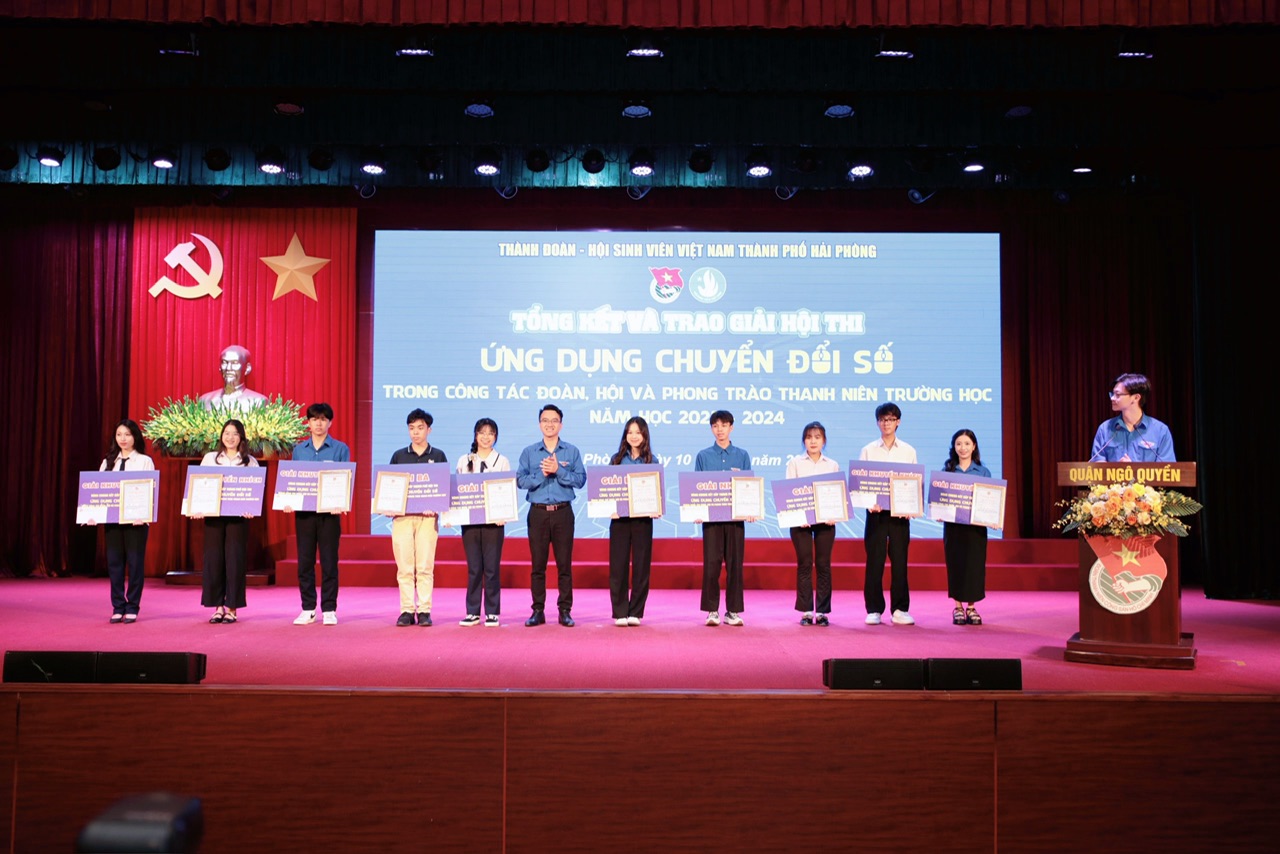 Ngoài ra, Thành đoàn - Hội Sinh viên thành phố tổ chức tổng kết, trao giải Hội Sinh viên thành phố tổ chức tổng kết, trao giải Hội thi “Ứng dụng Chuyển đổi số trong công tác Đoàn - Hội và phong trào thanh niên trường học” năm học 2023 - 2024 với 01 Giải Nhất, 02 Giải Nhì, 02 Giải Ba và 05 Giải Khuyến khích, 01 giải Bài dự thi được yêu thích nhất.