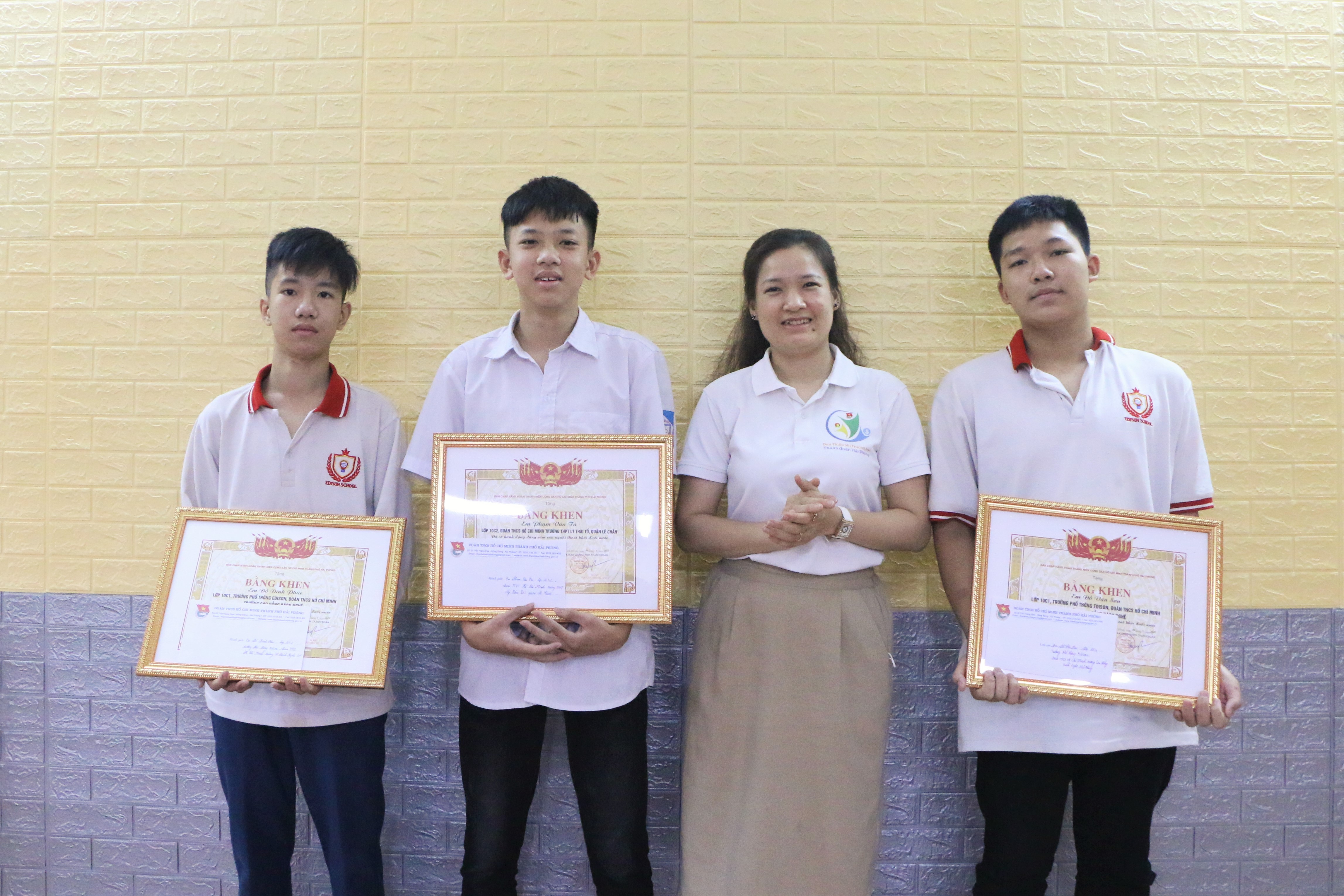 Tại buổi gặp mặt, Bí thư Thành Đoàn - đồng chí Vương Toàn Thu Thủy đã trao tặng Bằng khen, biểu dương tinh thần dũng cảm cứu người gặp nạn của 3 em học sinh; đồng thời đề nghị các cấp bộ Đoàn, Đội lan tỏa hành động đẹp của các em.