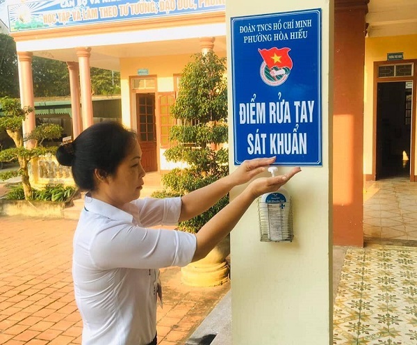 Đoàn phường Hòa Hiếu tiến hành lắp các điểm rửa tay sát khuẩn trước trụ sở cơ quan phường và nhà văn hóa phường