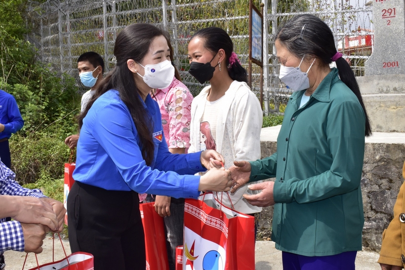 Đồng chí Dương Minh Nguyệt - Bí thư Tỉnh đoàn, Chủ tịch Hội LHTN Việt Nam tỉnh trao tặng các suất quà cho hộ gia đình khó khăn tại xã Cao Mã Pờ