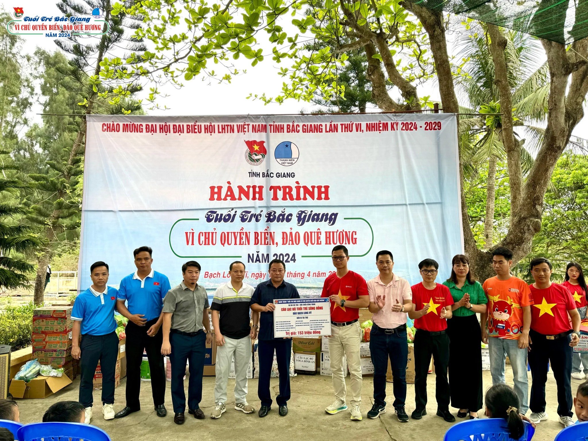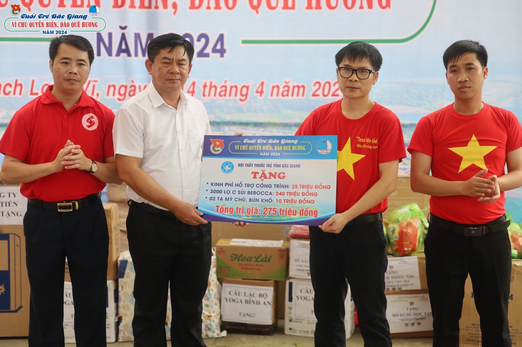 Ban Tổ chức hành trình đã phối hợp khảo sát, vận động và phối hợp các đơn vị trao tặng, thi công các hạng mục như: Công trình cải tạo - sửa chữa khu nhà sinh hoạt cộng đồng của thanh thiếu nhi trên huyện đảo Bạch Long Vĩ trị giá 153 triệu đồng; Hội Doanh nhân trẻ tỉnh Bắc Giang trao tặng 01 chiếc tivi 55 inch cho Liên đội Thanh niên xung phong; Hội thầy thuốc trẻ tỉnh Bắc Giang trao tặng 3000 hộp C sủi Berocca và 02 tạ mỳ Chũ, bún khô cho người dân, thanh niên xung phong và học sinh trị giá 275 triệu đồng; Hội LHTN tỉnh, Hội Sinh viên Bắc Giang tại Thái Nguyên trao tặng 40 thùng sữa và 400 quyển vở học sinh cho các em học sinh; Công ty TNHH Giáo dục Hương Hương trao tặng 01 chiếc máy vi tính cho Liên đội Thanh niên xung phong; Công ty TNHH Kỹ thuật dịch vụ Tân Tiến trao tặng 01 chiếc máy lọc nước RO cho trường Tiểu học; Công ty TNHH Công nghệ Sơn Vingos Nano Việt Nam trao tặng 15 thùng sơn để thi công công trình nhà sinh hoạt cộng đồng; Đoàn Sở Giao thông vận tải và Sở Tài chính Bắc Giang trao tặng tủ sách cho trường Tiểu học... Bên cạnh đó, Hội LHTN các huyện, thị, thành phố và CLB trực thuộc Hội LHTN tỉnh Bắc Giang cùng các đơn vị đã có rất nhiều phần quà, nhu yếu phẩm gửi tặng Thanh niên xung phong, học sinh và Nhân dân Huyện đảo Bạch Long Vĩ. Tổng trị giá các phần quà trên 500 triệu đồng.