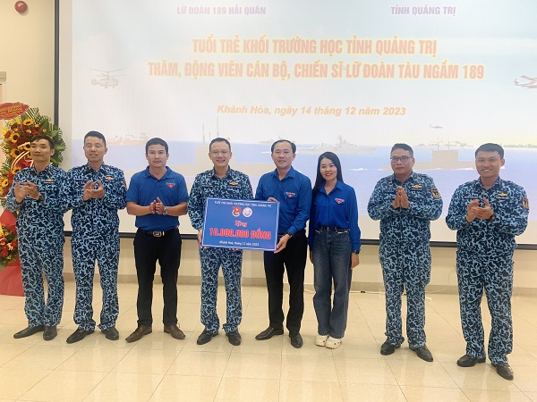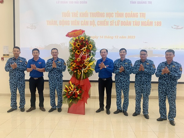 Trong chương trình, Đoàn công tác đã được giới thiệu về lịch sử hình thành và phát triển của Lữ đoàn Tàu ngầm 189; tham quan cơ sở vật chất, trang thiết bị huấn luyện. Tại đây, Đoàn đã trao tặng hoa chúc mừng đơn vị nhân kỷ niệm 79 năm Ngày thành lập Quân đội Nhân dân Việt Nam (22/12/1944 - 22/12/2023) và trao tặng quà động viên cán bộ, chiến sĩ Lữ đoàn.