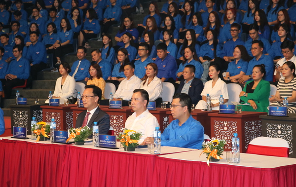 Đồng chí Ngô Văn Cương, Bí thư Trung ương Đoàn, Chủ nhiệm Uỷ ban Kiểm tra Trung ương Đoàn (áo xanh bên phải) tham dự chương trình