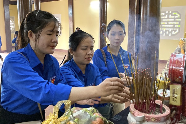 Cán bộ, ĐVTN dâng hương tưởng nhớ đồng chí Bí thư đầu tiên của Đảng bộ tỉnh tại Nhà tưởng niệm đồng chí Nguyễn Nghiêm.