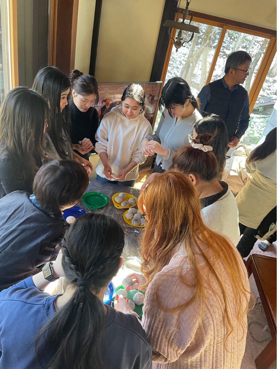 Giữa tiết trời lạnh giá phủ tuyết trắng, các bạn trẻ có cơ hội trải nghiệm tắm onsen truyền thống - một nét văn hóa độc đáo của Nhật Bản. Ẩm thực Nhật Bản là một phần không thể thiếu trong chuyến đi. Tại những gia đình địa phương, các thành viên cùng gia đình dân thưởng thức những món ăn truyền thống của người dân Nhật Bản, cùng nhau kết nối với thiên nhiên, tìm hiểu triết lý sống hài hòa với thiên nhiên của người Nhật Bản. Đoàn đại biểu cũng tham gia làm bánh Nhật, cảm nhận sự trân trọng từng nguyên liệu và tinh hoa của nền văn hóa ẩm thực nơi đây.