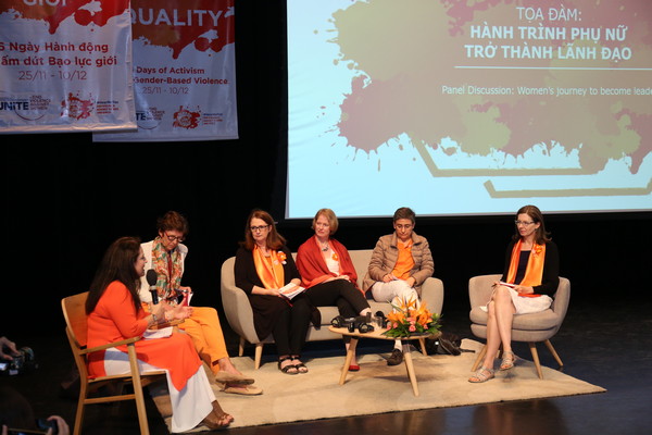 Cũng trong buổi sáng đã diễn ra diễn đàn “Hành trình phụ nữ trở thành lãnh đạo”, diễn ra tại Trường Quốc tế Liên hợp quốc - UNIS, với hơn 400 đại biểu, khách mời là những người nổi tiếng như: Ca sỹ Hoàng Bách, đại diện hình ảnh Phong trào HeForShe tại Việt Nam; Dương Thùy Linh - Hoa hậu Phụ nữ Toàn thế giới 2018; Mia Nguyễn – Chuyên gia Tư vấn tâm lý tại Công ty Tư vấn tâm lý Ladies of Việt Nam và tham gia giảng dạy tại Khoa Tâm lý, Đại học Khoa học Xã hội và Nhân văn, thành phố Hồ Chí Minh...