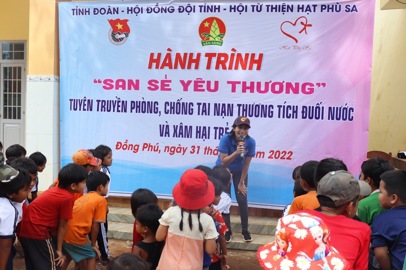 Tại chương trình, các em học sinh ở 2 xã đã được chị Thạch Thị Thùy Dương - Ủy viên thường trực Hội đồng Đội tỉnh chia sẻ về sự nguy hiểm của tai nạn đuối nước cũng như hướng dẫn cho các em hiểu hơn về những nguyên nhân và nguy cơ xảy ra tai nạn đuối nước khi các em bơi, tắm tại ao, hồ, sông, suối. Đồng thời, chị Thạch Thị Thùy Dương cung cấp kiến thức về cách phòng tránh xâm hại trẻ em; chia sẻ cho các em số điện thoại của Tổng đài điện thoại Quốc gia bảo vệ trẻ em 111 để phòng tránh những trường hợp xấu nhất có thể xảy ra.