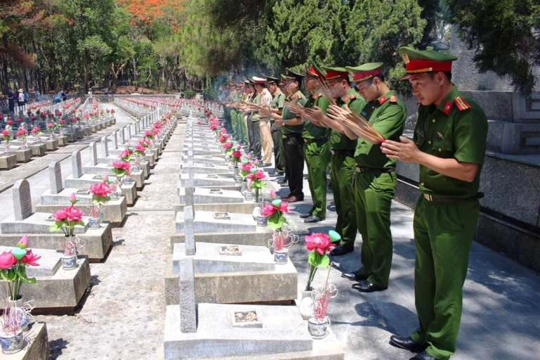 Tuổi trẻ Công an Hà Tĩnh phối hợp với Đoàn thanh niên các địa phương tổ chức hoạt động thăm viếng, tri ân tại các nghĩa trang liệt sỹ