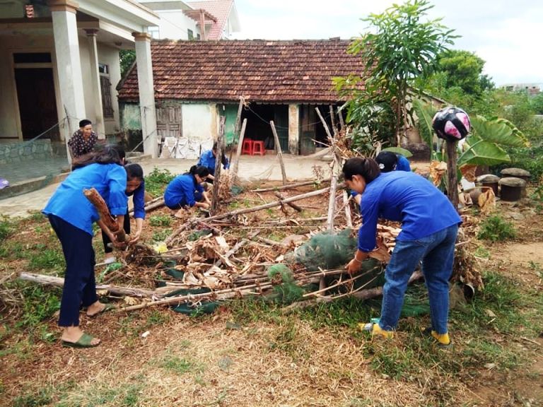 Đoàn viên, thanh niên giúp đỡ gia đình thương binh tu sữa nhà ở, chỉnh trang vườn hộ