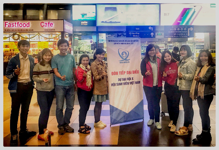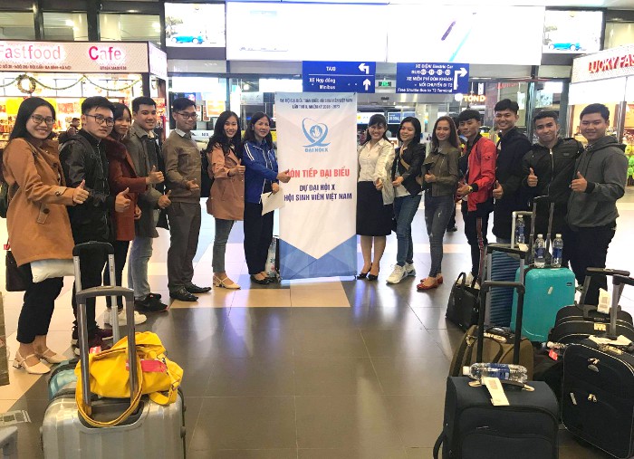 Đoàn đại biểu của Hội sinh viên tỉnh Đồng Nai tại sân bay Nội Bài