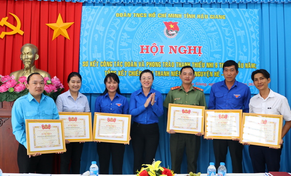 Dịp này, Ban Tổ chức hội nghị đã trao bằng khen Trung ương Đoàn cho 09 tập thể, 17 cá nhân có thành tích xuất sắc trong Chương trình tiếp sức mùa thi, Chiến dịch tình nguyện mùa hè xanh, hoa phượng đỏ, hành quân xanh, kỳ nghỉ hồng năm 2020. Bên cạnh đó, Ban Tổ chức hội nghị còn trao giấy khen của Công an tỉnh cho 07 tập thể và 09 cá nhân có thành tích xuất sắc trong Cuộc thi viết tìm hiểu về 75 năm Ngày Truyền thống Công an nhân dân Việt Nam (19/8/1945-19/8/2020) và 15 năm Ngày hội toàn dân bảo vệ an ninh Tổ quốc (19/8/2005-19/8/2020).