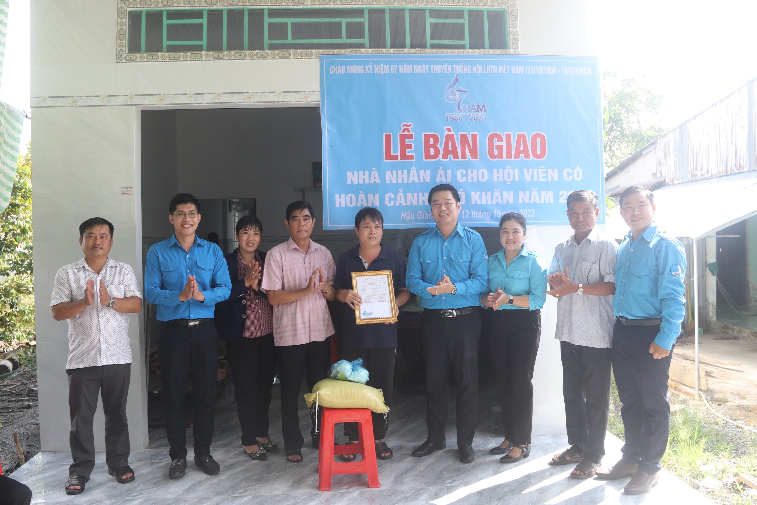 Đồng chí Bùi Hữu Lộc, Tỉnh ủy viên, Bí thư Tỉnh đoàn trao tặng nhà nhân ái cho hội viên