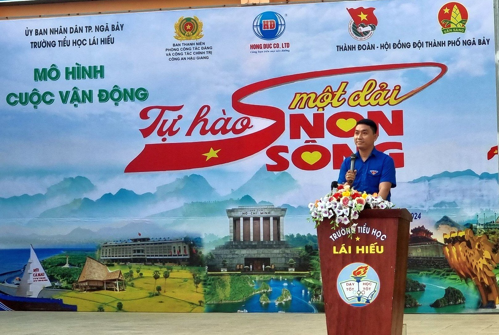 Phát biểu tại chương trình, đồng chí Nguyễn Thanh Tú, Phó Chủ tịch Thường trực Hội đồng Đội tỉnh Hậu Giang biểu dương tinh thần chủ động, tích cực của Ban Thường vụ Thành đoàn, Hội đồng Đội thành phố Ngã Bảy trong việc ra mắt mô hình triển khai thực hiện Cuộc vận động “Tự hào một dải non sông” tại Trường Tiểu học Lái Hiếu; đồng thời phối hợp với ngành có liên quan tổ chức tuyên truyền về mục đích, ý nghĩa Cuộc vận động “Tự hào một dải non sông” đến các cấp bộ Đoàn, Hội, Đội trên địa bàn thành phố; chỉ đạo giáo viên làm Tổng phụ trách Đội phối hợp với giáo viên chủ nghiệm, đặc biệt là giáo viên bộ môn địa lý sử dụng mô hình một cách hiệu quả trong việc giáo dục lòng yêu nước, ý thức về chủ quyền quốc gia, dân tộc cho các em học sinh để các em ý thức được trách nhiệm của mình, tích cực tham gia học tập, rèn luyện, góp phần xây dựng và bảo vệ vững chắc Tổ quốc Việt Nam xã hội chủ nghĩa.