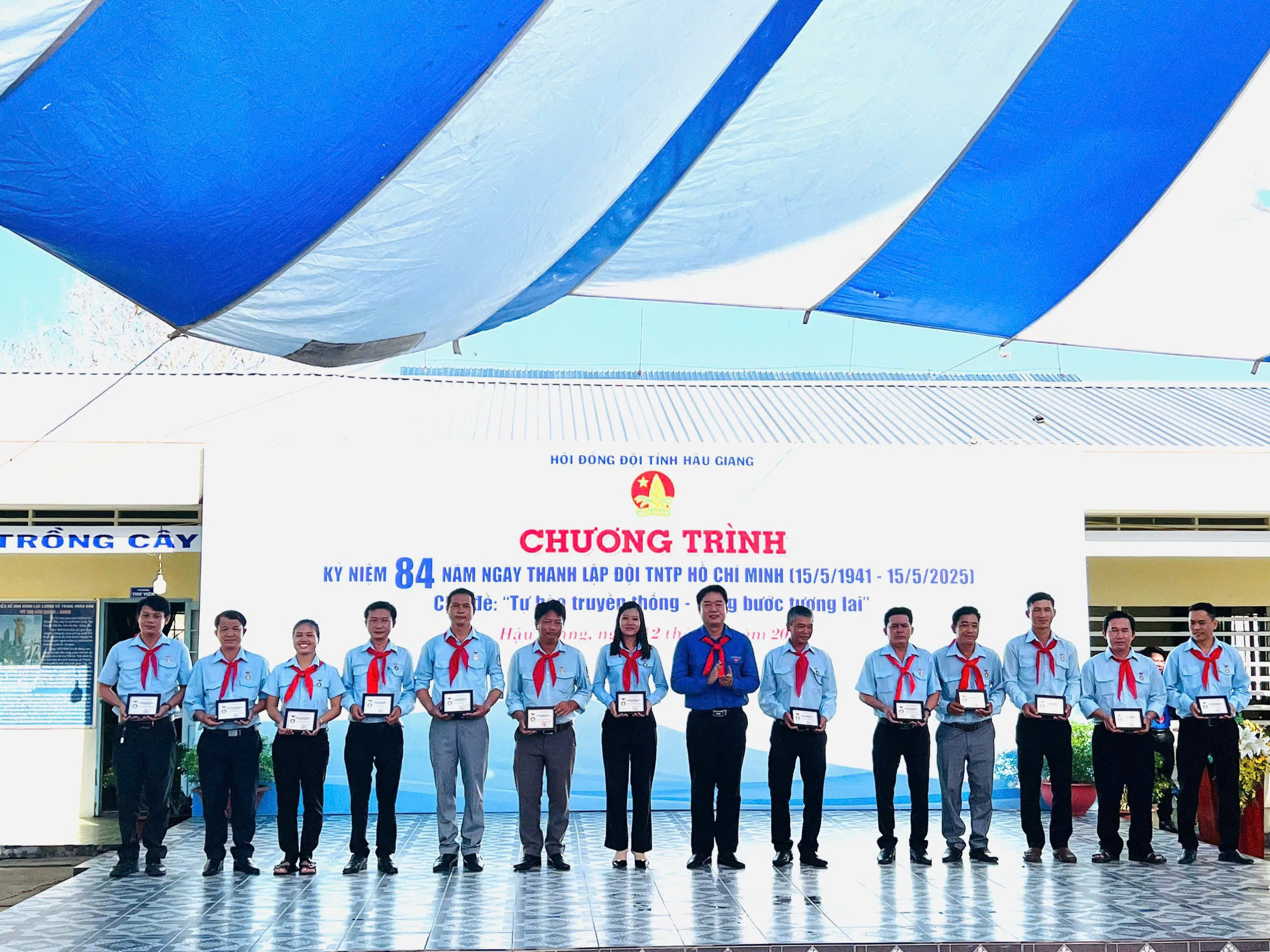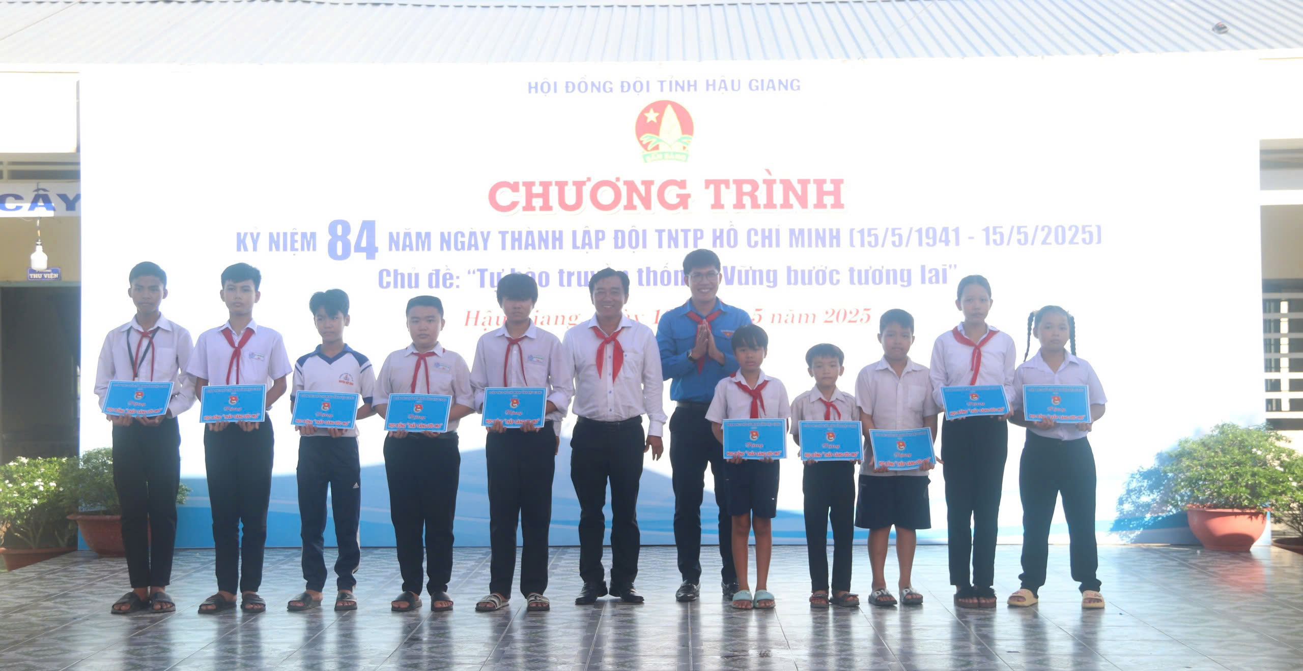 Nhân dịp này, để ghi nhận những nỗ lực và đóng góp trong công tác chăm sóc, giáo dục thiếu nhi Hội đồng Đội tỉnh Hậu Giang trao tặng Huy hiệu “Phụ trách giỏi” của Ban Chấp hành Trung ương Đoàn cho 13 đồng chí giáo viên làm Tổng phụ trách Đội có thành tích xuất sắc trong công tác chăm sóc, giáo dục thiếu niên nhi đồng và xây dựng tổ chức Đội TNTP Hồ Chí Minh. Đồng thời, tại chương trình đã thực hiện nghi thức kết nạp đội viên mới, trao 20 suất học bổng Thắp sáng ước mơ Tuổi trẻ Hậu Giang cho các em học sinh có hoàn cảnh khó khăn trên địa bàn thành phố Vị Thanh.