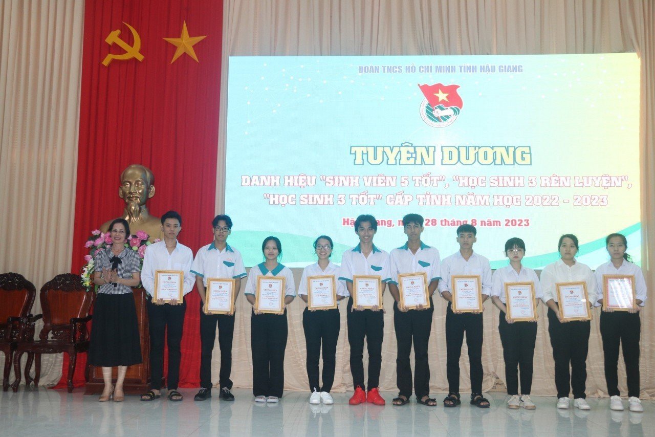 Tại Hội nghị, Ban Thường vụ Tỉnh đoàn đã tổ chức trao khen thưởng cho các tập thể và cá nhân:Bằng khen của Ủy ban nhân dân tỉnh cho 10 tập thể đã có thành tích xuất sắc trong công tác Đội và phong trào thiếu nhi năm học 2022-2023; tặng Cờ thi đua của Hội đồng Đội tỉnh cho 03 tập thể đã có thành tích xuất sắc dẫn đầu trong công tác Đội và phong trào thiếu nhi năm học 2022-2023; Bằng khen của Tỉnh đoàn cho 08 tập thể và 08 cá nhân có thành tích xuất sắc trong công tác Đoàn và phong trào thanh niên trường học, năm học 2022 - 2023; 08 tập thể và 08 cá nhân có thành tích xuất sắc trong công tác Đội và phong trào thiếu nhi, năm học 2022 - 2023; trao tặng Danh hiệu “Sinh viên 5 tốt”; “Học sinh 3 rèn luyện”; “Học sinh 3 tốt” cấp tỉnh cho 24 cá nhân là học sinh, sinh viên trên địa bàn tỉnh Hậu Giang.