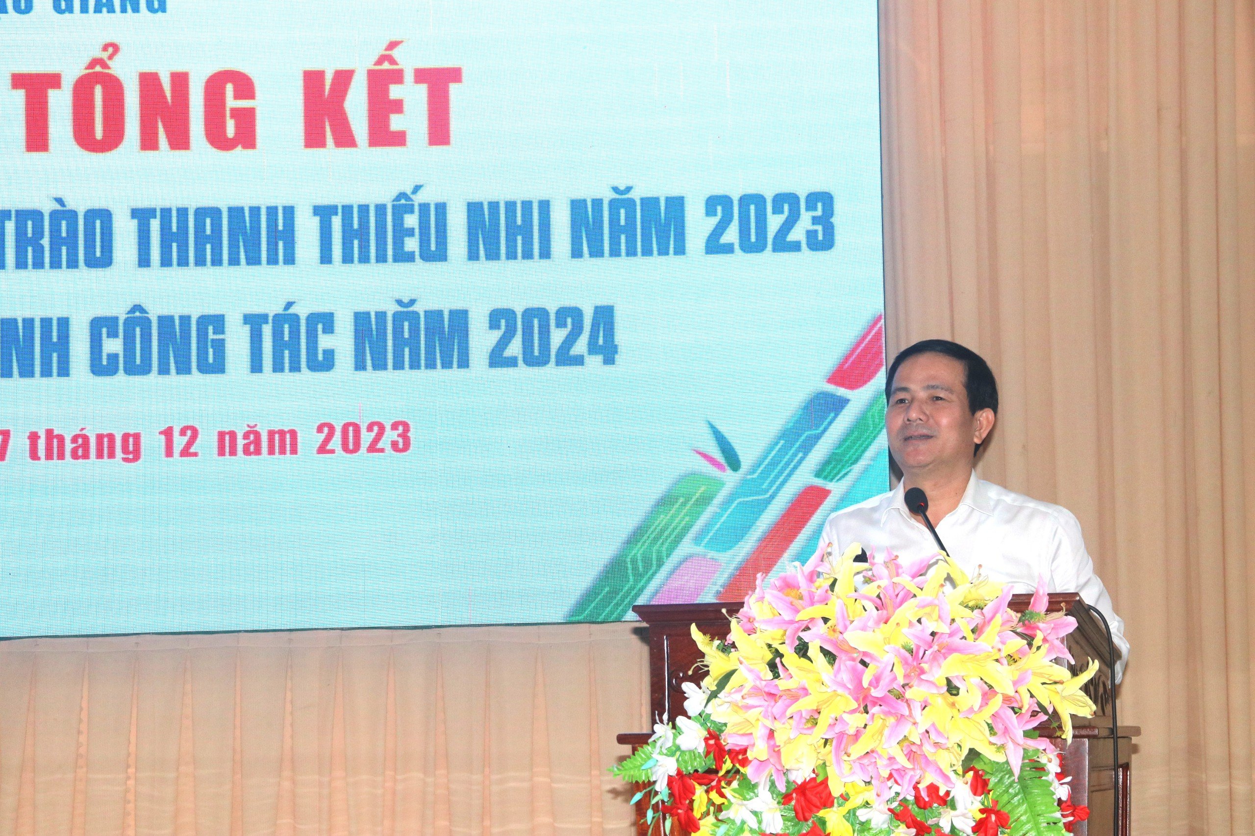 Tổ chức Liên hoan Chỉ huy Đội giỏi tỉnh Hậu Giang, lần thứ VII; Liên hoan các đội tuyên truyền về Luật trẻ em tỉnh Hậu Giang; các cấp bộ Đoàn, Đội trên địa bàn tỉnh đã hỗ trợ, chăm lo, giúp đỡ hơn 69.000 thiếu nhi có hoàn cảnh khó khăn, với tổng kinh phí hơn 15,5 tỷ đồng; chỉ đạo xây dựng thực hiện mô hình đột phá “4 kiên, 5 chống” trong bảo vệ nền tảng tư tưởng của Đảng năm 2023; Chương trình "Khát vọng cống hiến - lẽ sống thanh niên", tuyên dương thanh niên tiên tiến làm theo lời Bác năm 2023; Tổ chức Hội thi “Tư tưởng Hồ Chí Minh - Ánh sáng soi đường cho Tuổi trẻ Hậu Giang”; tổ chức Hội thi “Tuyên truyền ca khúc cách mạng” năm 2023; tổ chức Cuộc thi Video clip “Tuổi trẻ Hậu Giang với công tác bảo vệ nền tảng tư tưởng của Đảng” năm 2023; thành lập mới một chuyên trang “Tinh thần thép” trong chia sẻ, bảo vệ nền tảng tư tưởng của Đảng; chỉ đạo thực hiện đạt và vượt 14/14 chỉ tiêu (trong đó, có 02 chỉ tiêu đạt kế hoạch, 12 chỉ tiêu vượt kế hoạch). Tổ chức Ngày hội “Tôi yêu Tổ quốc tôi” chào mừng kỷ niệm 67 năm ngày truyền thống Hội LHTN Việt Nam (15/10/1956 - 15/10/2023) và tuyên dương 40 thủ lĩnh thanh niên, cán bộ Hội tiêu biểu thuộc các lĩnh vực; tổ chức Chương trình “Tháng ba biên giới” năm 2023 tại tỉnh An Giang; tổ chức Hành trình Thầy thuốc trẻ làm theo lời Bác, tình nguyện vì sức khỏe cộng đồng năm 2023 tại xã Tân Bình, huyện Phụng Hiệp với chủ đề “Thầy thuốc trẻ tiên phong trong chuyển đổi số, tình nguyện vì sức khỏe cộng đồng”,…