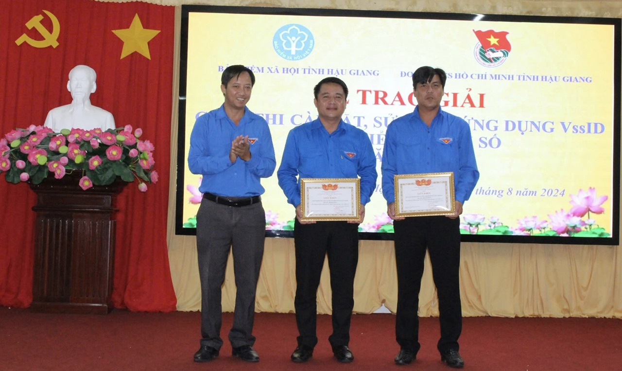 Dịp này, đại diện lãnh đạo Tỉnh đoàn, Bảo hiểm xã hội tỉnh đã tặng giấy khen cho 05 tập thể và 29 cá nhân có thành tích xuất sắc trong cuộc thi “Cài đặt, sử dụng ứng dụng VssID - BHXH số” năm 2024. Trong đó, giải Nhất cuộc thi tập thể Thành đoàn Ngã Bảy, giải Nhì Huyện đoàn Vị Thủy và giải Ba đơn vị Thành đoàn Vị Thanh.