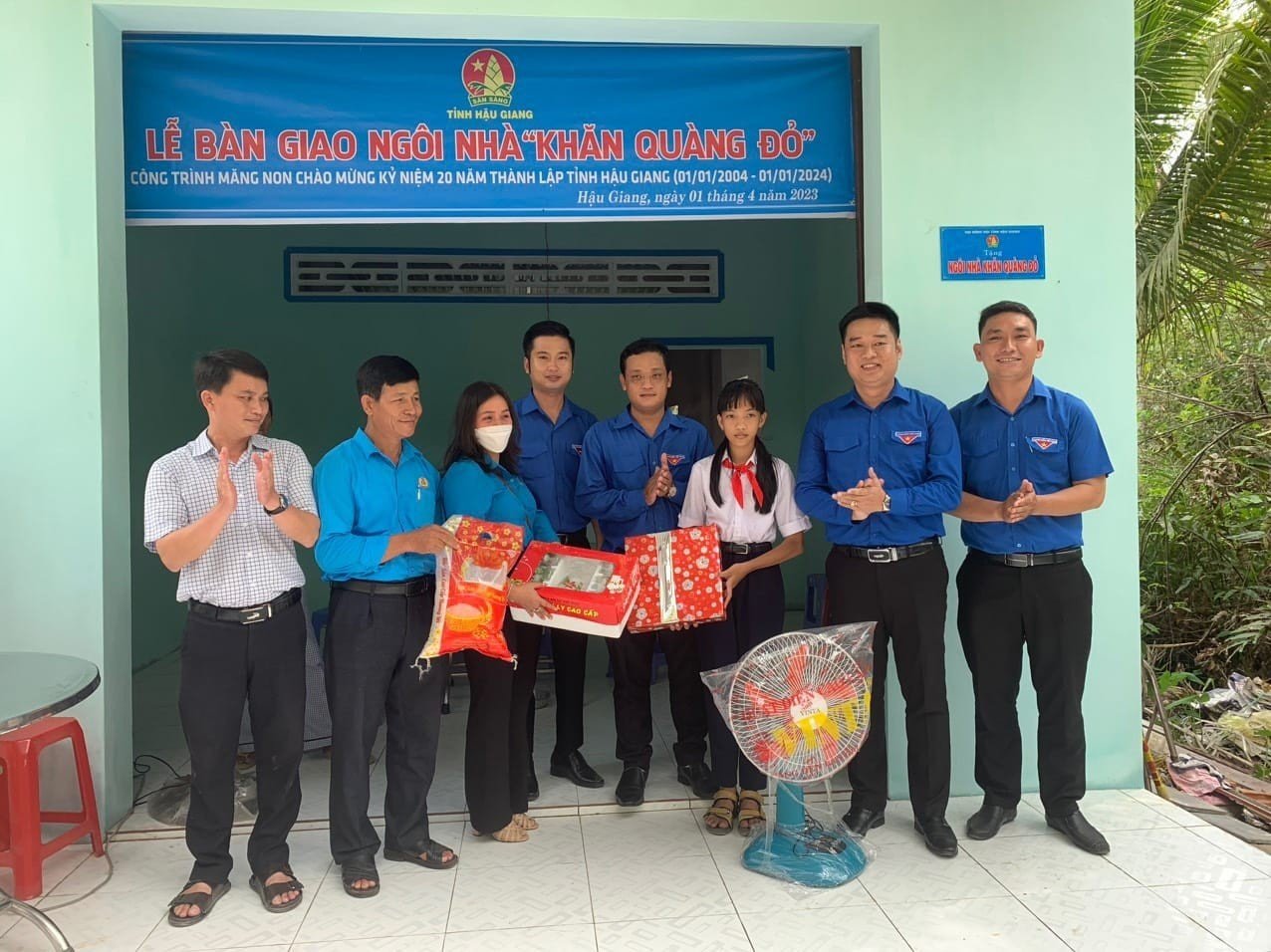 Cùng ngày, Ban Thường vụ Tỉnh đoàn, Hội đồng Đội tỉnh Hậu Giang tổ chức Lễ bàn giao Ngôi nhà “Khăn quàng đỏ” năm 2023 cho em Lê Thị Yến Ngọc, học sinh lớp 6A4 Trường THCS Nguyễn Du, thành phố Ngã Bảy.