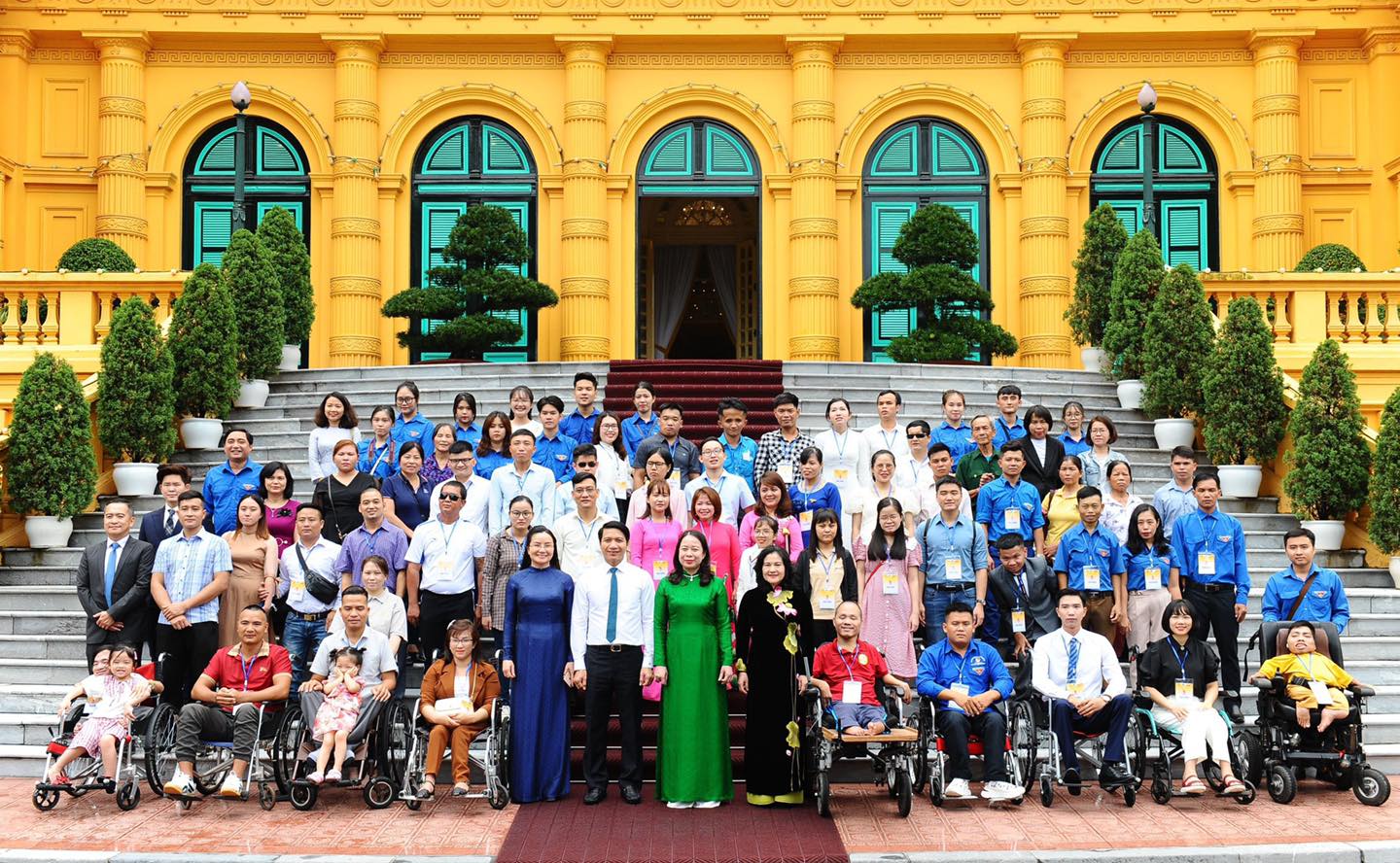 Đồng chí Hồ Đình Tài (hàng dưới thứ 2 từ trái sang phải) tham gia chương trình gặp mặt giữa Phó Thủ Tướng và 50 gương mặt thanh niên khuyết tật tiêu biểu năm 2022