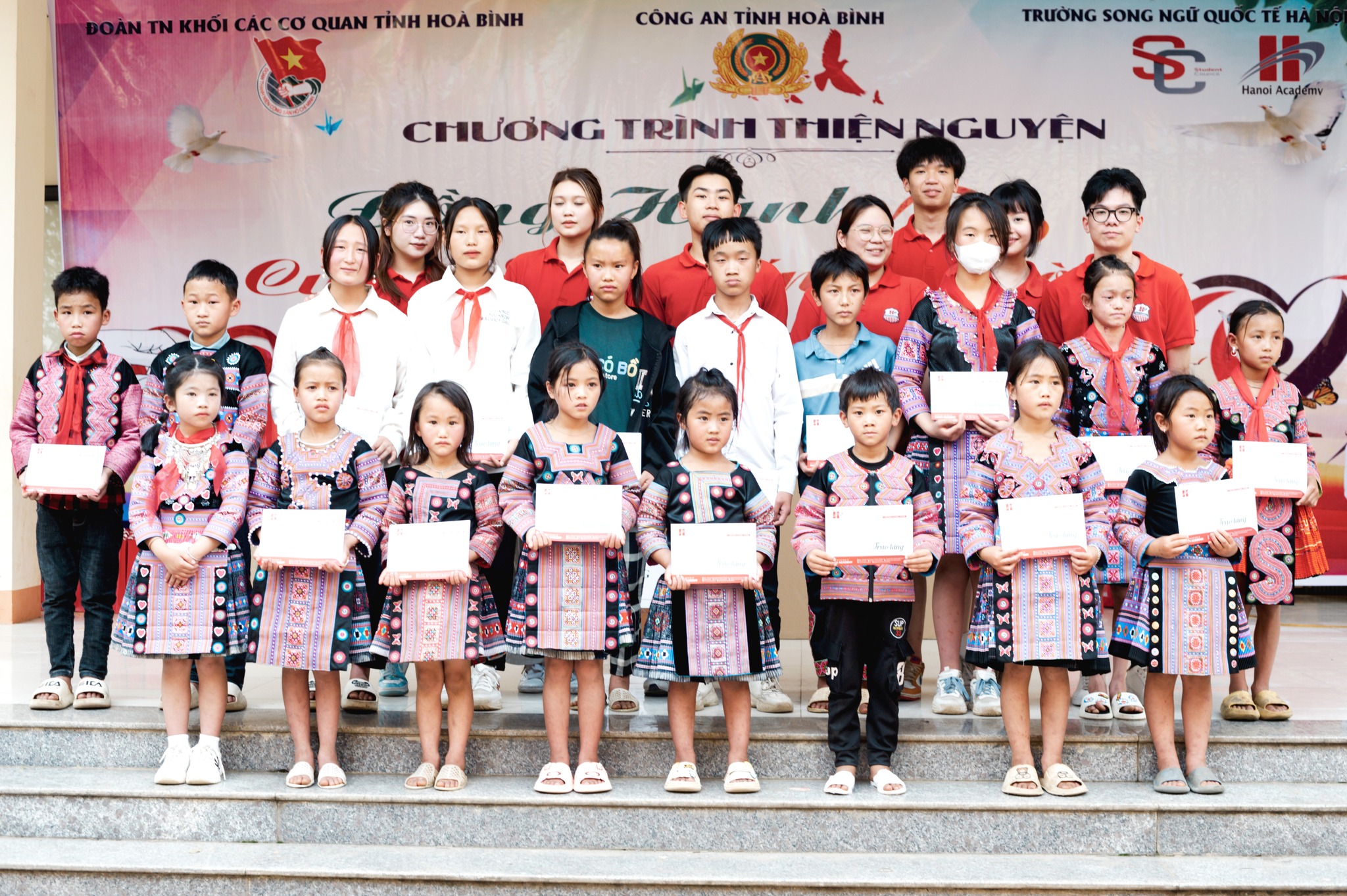 Cũng trong chương trình, các bạn học sinh của trường song ngữ quốc tế Hà Nội Academy đã cùng giao lưu các tiết mục văn nghệ, trải nghiệm và khám phá những nét văn hoá độc đáo của học sinh đồng bào dân tộc Mông của tỉnh Hoà Bình. Trực tiếp trao tặng những phần quà ý nghĩa đến các bạn học sinh của nhà trường. Những phần quà mang theo nhiều tình cảm, sự yêu thương đùm bọc của tập thể, cá nhân các nhà hảo tâm gửi tới các em học đã mang lại nhiều giá trị xã hội cho nhà trường và học sinh có hoàn cảnh khó khăn, giúp các em có thêm điều kiện sinh hoạt và học tập, là nguồn động viên lớn cho các thầy cô và các em cố gắng vượt qua khó khăn, phấn đấu trong học tập và rèn luyện bản thân, trở thành con ngoan, trò giỏi của gia đình, nhà trường và xã hội./.