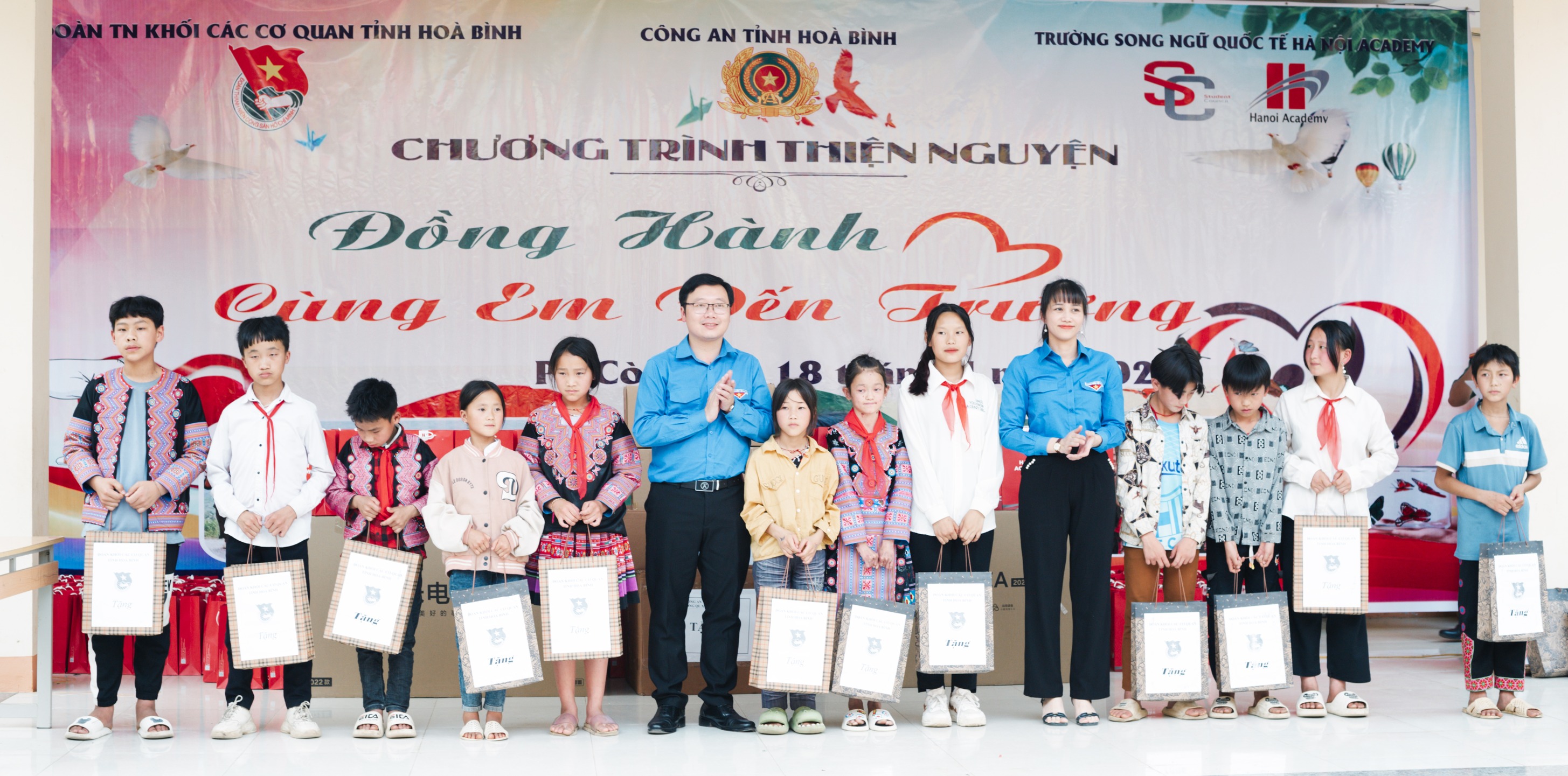 ĐTN: Ngày 18/4, Đoàn Khối các cơ quan tỉnh phối hợp với Công an tỉnh Hòa Bình và Trường song ngữ quốc tế Hà Nội Academy đã tổ chức Chương trình thiện nguyện “Đồng hành cùng em đến trường” tặng quà cho học sinh nghèo, có hoàn cảnh khó khăn tại trường TH&THCS xã Pà Cò, huyện Mai Châu, tỉnh Hòa Bình.
