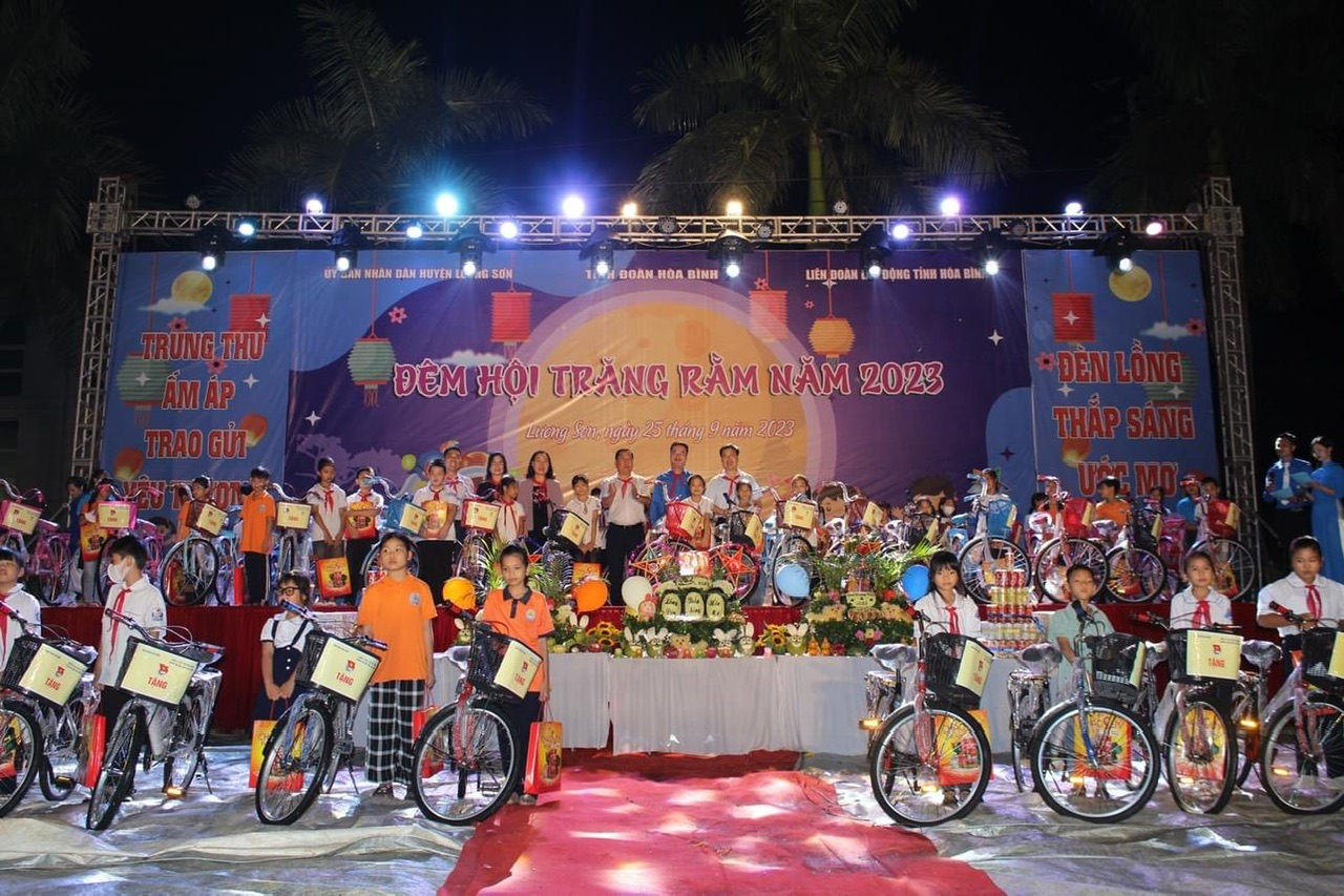 Nhân dịp này, Trung ương Đoàn, tỉnh Hòa Bình, huyện Lương Sơn đã trao tặng 90 xe đạp, 190 suất học bổng (mỗi suất trị giá 500 nghìn đồng), 1.100 cặp bánh trung thu cho trẻ em có hoàn cảnh đặc biệt, khó khăn và tặng nhiều phần quà, đồ dùng học tập cho học sinh… Trị giá các phần quà và học bổng trên 400 triệu đồng.