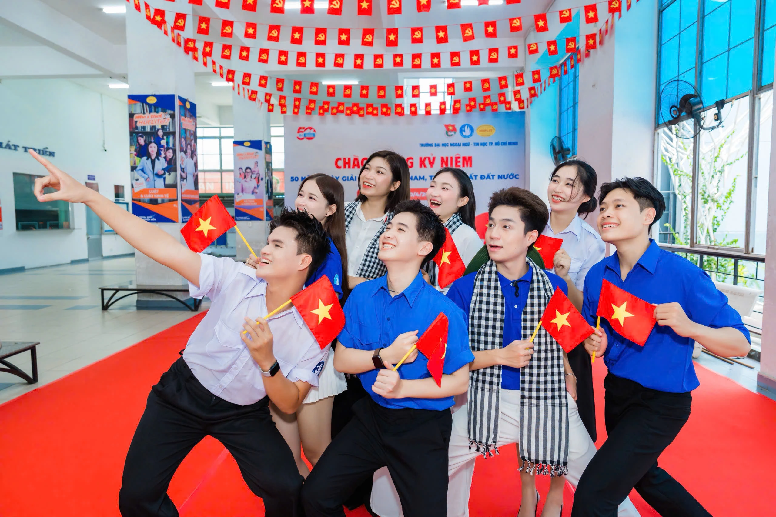 Không gian được phủ đỏ cờ Đảng, cờ Tổ quốc này do Đoàn thanh niên của trường thực hiện. Nguyễn Đăng Quang, cán bộ chuyên trách Đoàn Trường ĐH Ngoại ngữ - Tin học TP.HCM, cho biết với mong muốn tạo nên một không gian biểu tượng, thể hiện sự tri ân đối với lịch sử dân tộc và kết nối thế hệ trẻ với những giá trị truyền thống, Đoàn trường đã lên ý tưởng thực hiện hoạt động này. Tại không gian này, sinh viên cùng lưu lại những khoảnh khắc ý nghĩa với lá cờ đỏ sao vàng bằng niềm tự hào và lòng biết ơn quá khứ hào hùng của dân tộc hướng đến kỷ niệm 50 năm đất nước thống nhất.