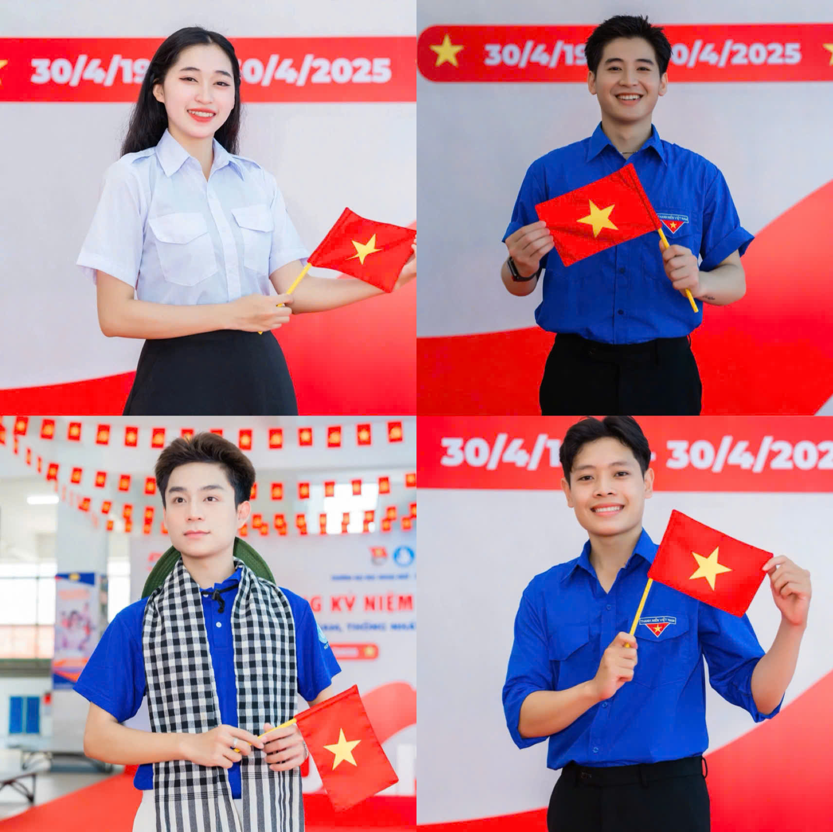 Những ngày này, sinh viên Trường ĐH Ngoại ngữ - Tin học TP.HCM cũng háo hức rủ nhau check-in với không gian rực đỏ của sắc cờ Tổ quốc ngay tại trường; rồi lan tỏa hình ảnh, niềm tự hào về tháng 4 lịch sử, về niềm vui và hạnh phúc khi được sống trong hòa bình trên khắp các nền tảng mạng xã hội.