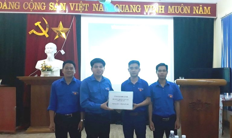 Lãnh đạo Tỉnh đoàn trao tặng sách cho Ban Thường vụ Đoàn xã Vĩnh Đồng, huyện Kim Bôi