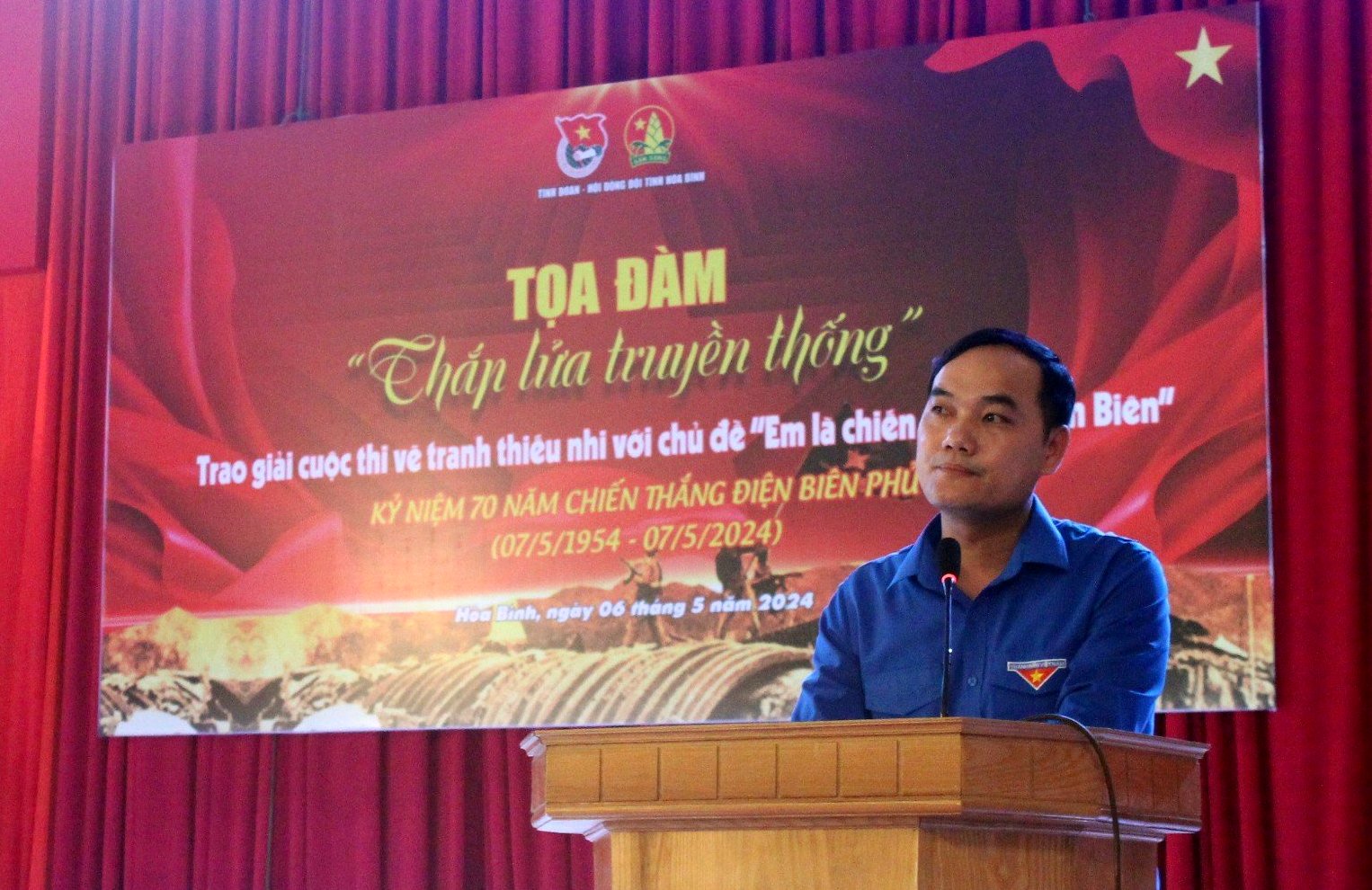 Phát biểu khai mạc chương trình, đồng chí Nguyễn Thành Luân, Phó Bí thư Tỉnh đoàn, Chủ tịch Hội đồng đội tỉnh chia sẻ: Chương trình Tọa đàm “Thắp lửa truyền thống” kỷ niệm 70 năm Chiến thắng Điện Biên Phủ sẽ là dịp để đoàn viên thanh niên, cựu chiến binh và nhân dân cùng ôn lại ý nghĩa và tầm vóc thời đại của Chiến thắng Điện Biên Phủ, những đóng góp quan trọng của Chiến thắng Điện Biên Phủ đối với sự nghiệp cách mạng Việt Nam.