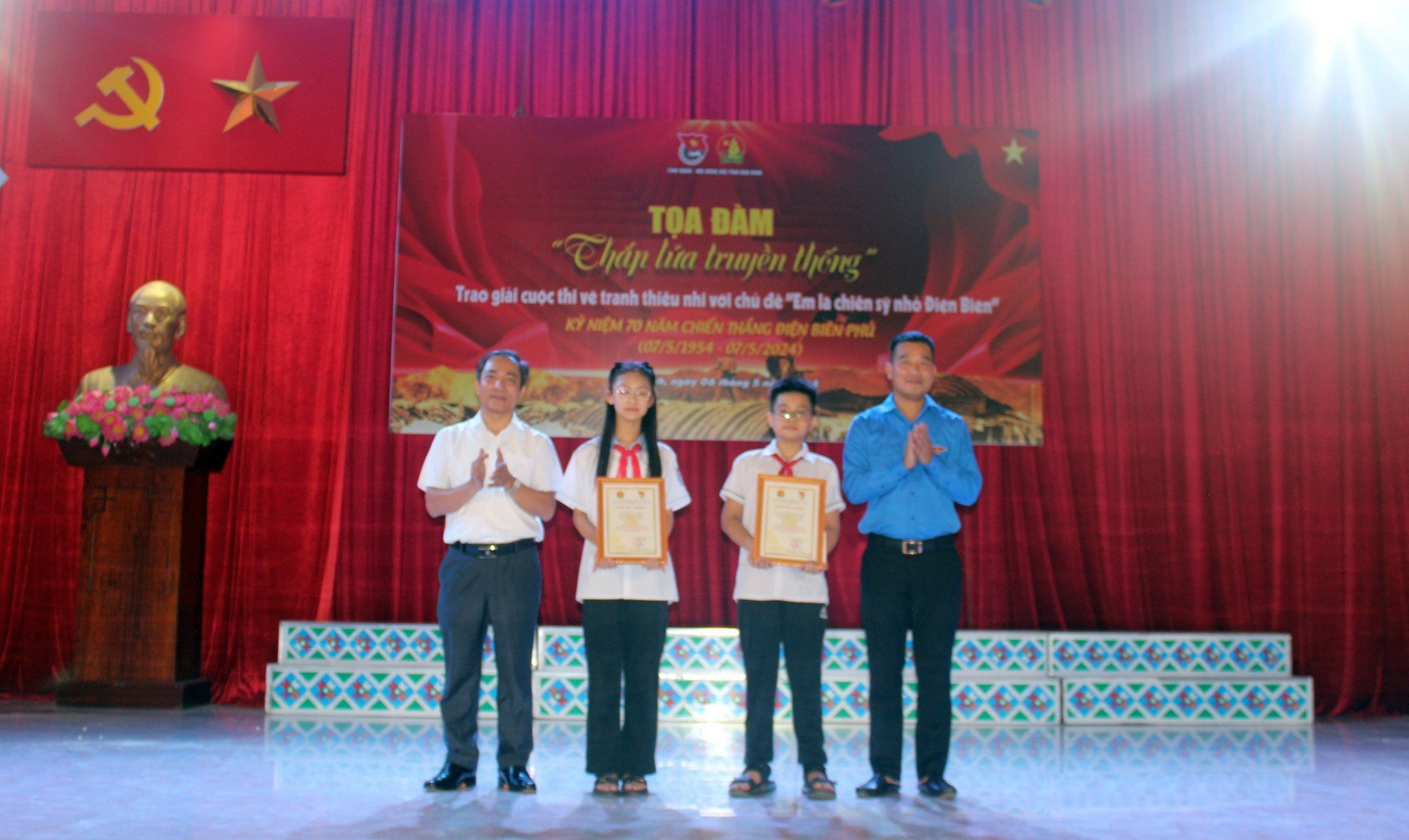Nhân dịp này, Ban Thường vụ Tỉnh đoàn – Hội đồng đội tỉnh đã trao giải cuộc thi vẽ tranh thiếu nhi với chủ đề “Em là chiến sĩ nhỏ Điện Biên” năm 2024 Kỷ niệm 70 năm Chiến thắng Điện Biên Phủ (07/5/1954-07/5/2024). Tại chương trình, Ban Tổ chức đã trao 02 giải nhất, 10 giải Nhì, 09 giải Ba và 06 giải khuyến khích cho các tác phẩm xuất sắc. Các tác phẩm tham gia đều bám sát chủ đề, nhiều bức tranh không chỉ đẹp về đường nét, màu sắc mà còn mang nhiều ý nghĩa sâu sắc về sự hiểu biết, ca ngợi tầm vóc và giá trị lịch sử vĩ đại của chiến thắng Điện Biên Phủ, thể hiện cảm xúc, suy nghĩ và những thay đổi của Điện Biên hôm nay. Đồng thời tôn vinh và tri ân tới các thế hệ cha anh đi trước đã anh dũng hi sinh cho sự nghiệp đấu tranh giải phóng dân tộc.