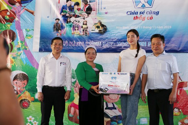 Chia sẻ tại chương trình, Hoa hậu Lương Thùy Linh cho biết, cảm thấy vinh dự khi được tham gia chương trình Chia sẻ cùng thầy cô tại Hòa Bình nhằm tôn vinh, tri ân những đóng góp của các thầy giáo, cô giáo dạy học cho con em đồng bào dân tộc và lan tỏa mạnh mẽ những câu chuyện đẹp về thầy cô đến với toàn xã hội. Cô bày tỏ sự cảm phục, trân trọng các thầy cô đã vượt nhiều khó khăn để đưa những chuyến đò cập bến thành công, hành trình học chữ của các em bớt khó khăn, cách trở.
