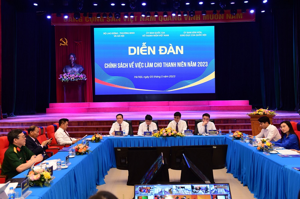 Sáng 5/5, nhân dịp Tháng Công nhân năm 2023, Ủy ban quốc gia về thanh niên Việt Nam phối hợp với Ủy ban Văn hóa, Giáo dục của Quốc hội, Bộ Lao động - Thương binh và Xã hội, Trung ương Đoàn TNCS Hồ Chí Minh tổ chức Diễn đàn Chính sách về việc làm cho thanh niên năm 2023 với Chủ đề: “Chính sách việc làm cho thanh niên”.