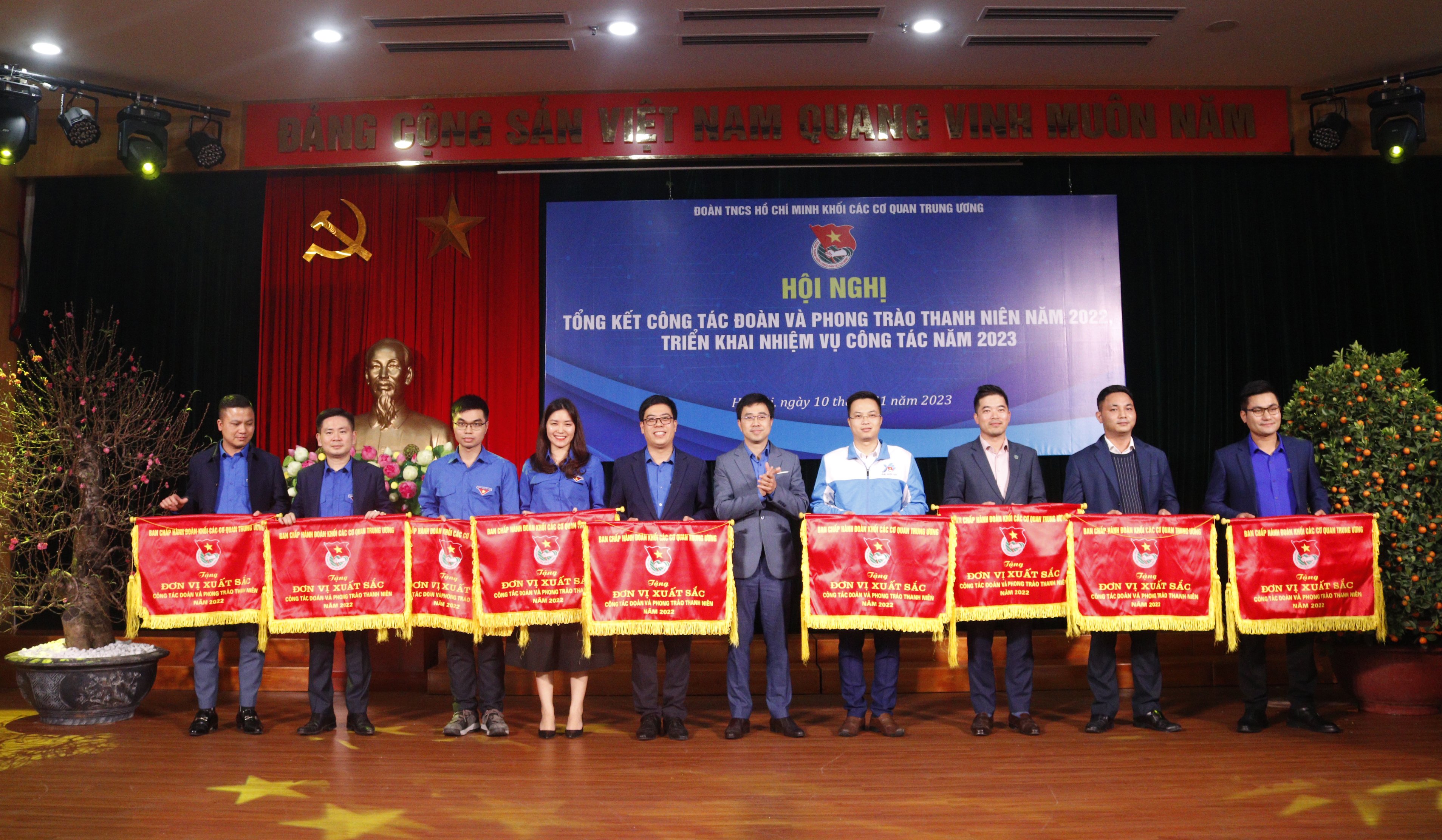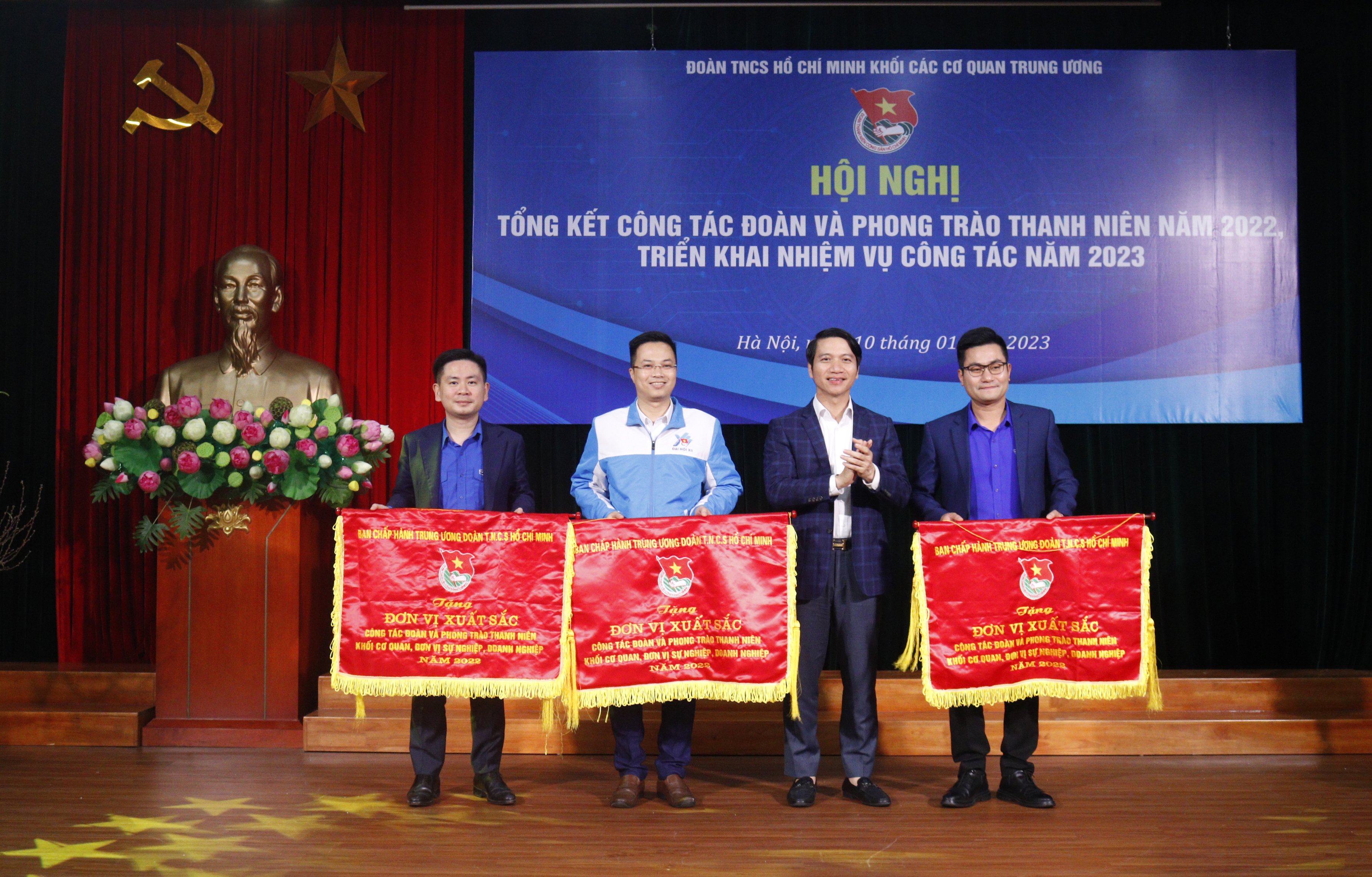 Bí thư Thường trực Trung ương Đoàn Nguyễn Ngọc Lương tặng Cờ thi đua xuất sắc trong công tác đoàn và phong trào thanh niên Khối cơ quan, sự nghiệp, doanh nghiệp năm 2022 của Ban Chấp hành Trung ương Đoàn cho 03 đơn vị thuộc Khối
