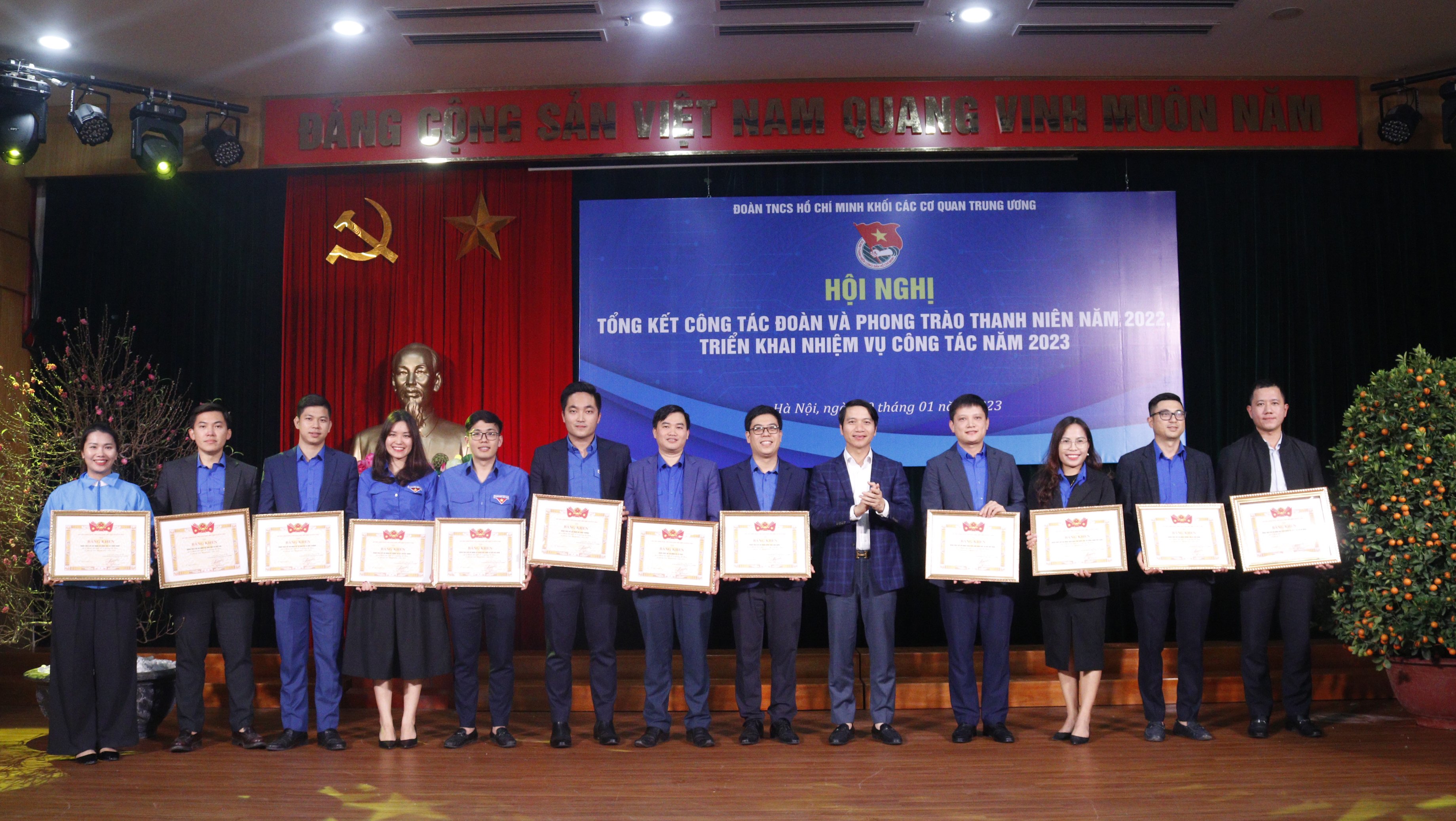 Để ghi nhận những thành tích đạt được trong năm 2022, Trung ương Đoàn TNCS Hồ Chí Minh đã trao tặng Bằng khen cho Đoàn Khối các cơ quan Trung ương; tặng Cờ thi đua xuất sắc trong công tác đoàn và phong trào thanh niên Khối cơ quan, sự nghiệp, doanh nghiệp năm 2022 của Ban Chấp hành Trung ương Đoàn cho 03 đơn vị thuộc Khối; tặng Bằng khen của Ban Chấp hành Trung ương Đoàn cho 13 đơn vị thuộc Khối;